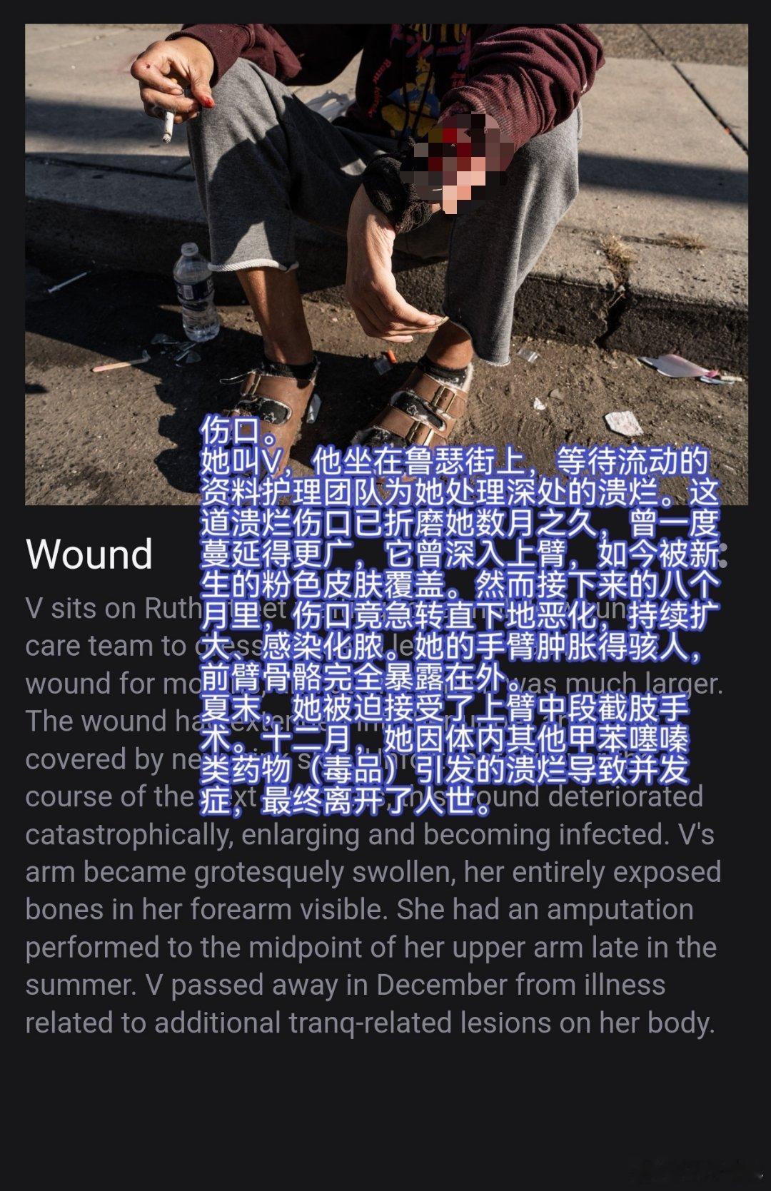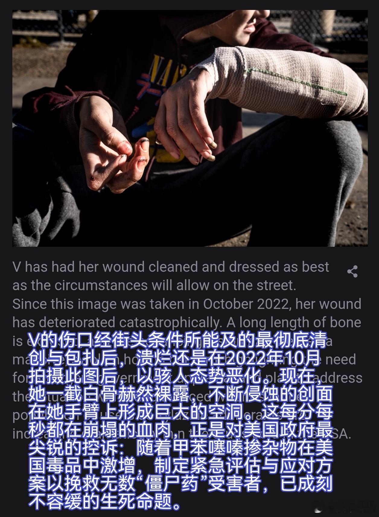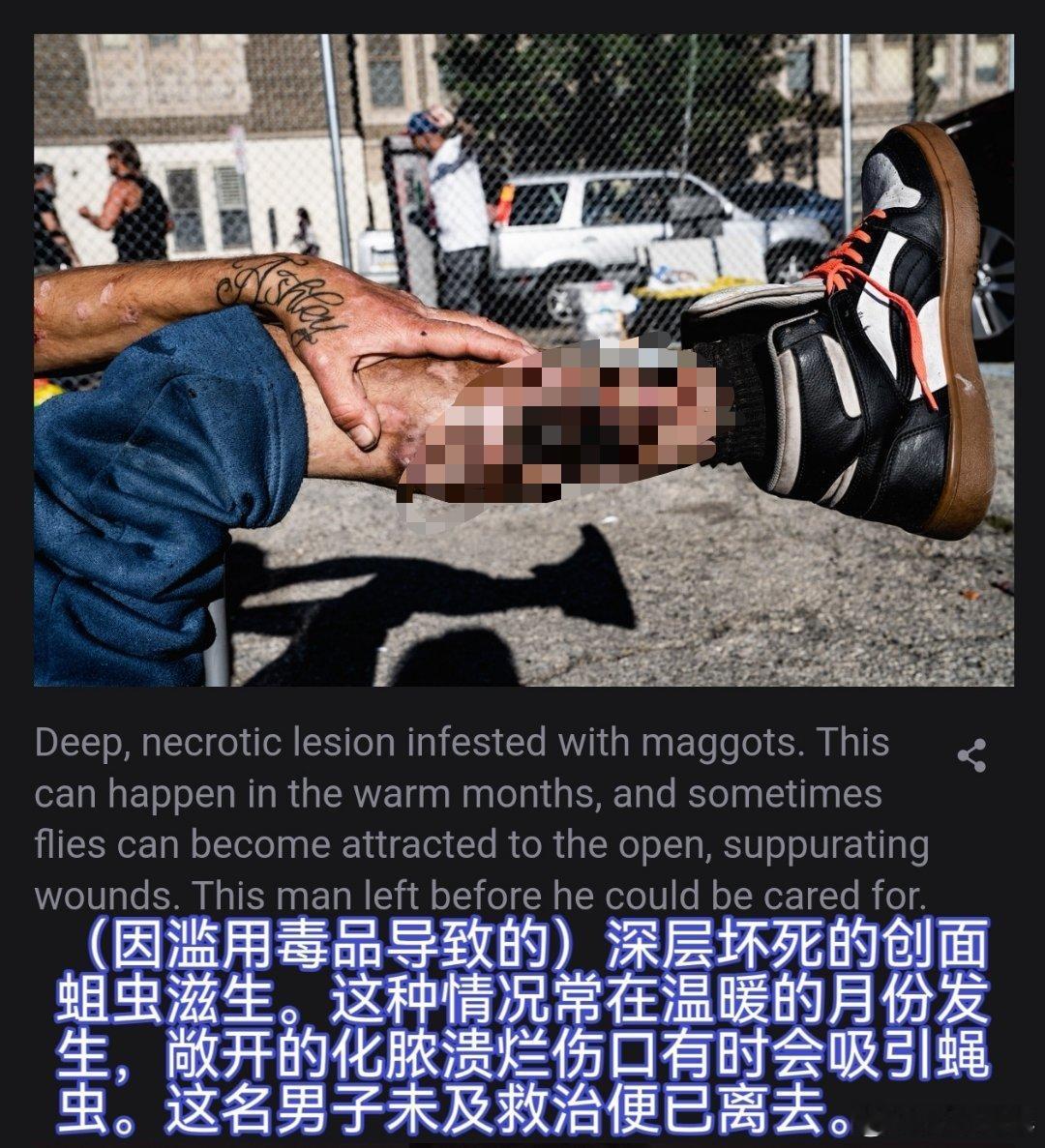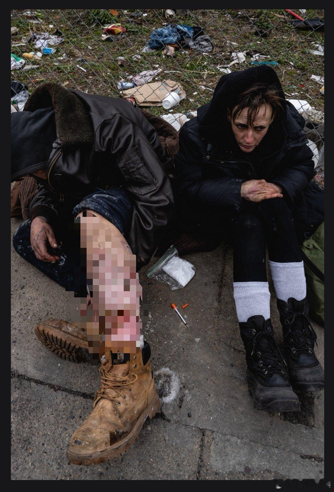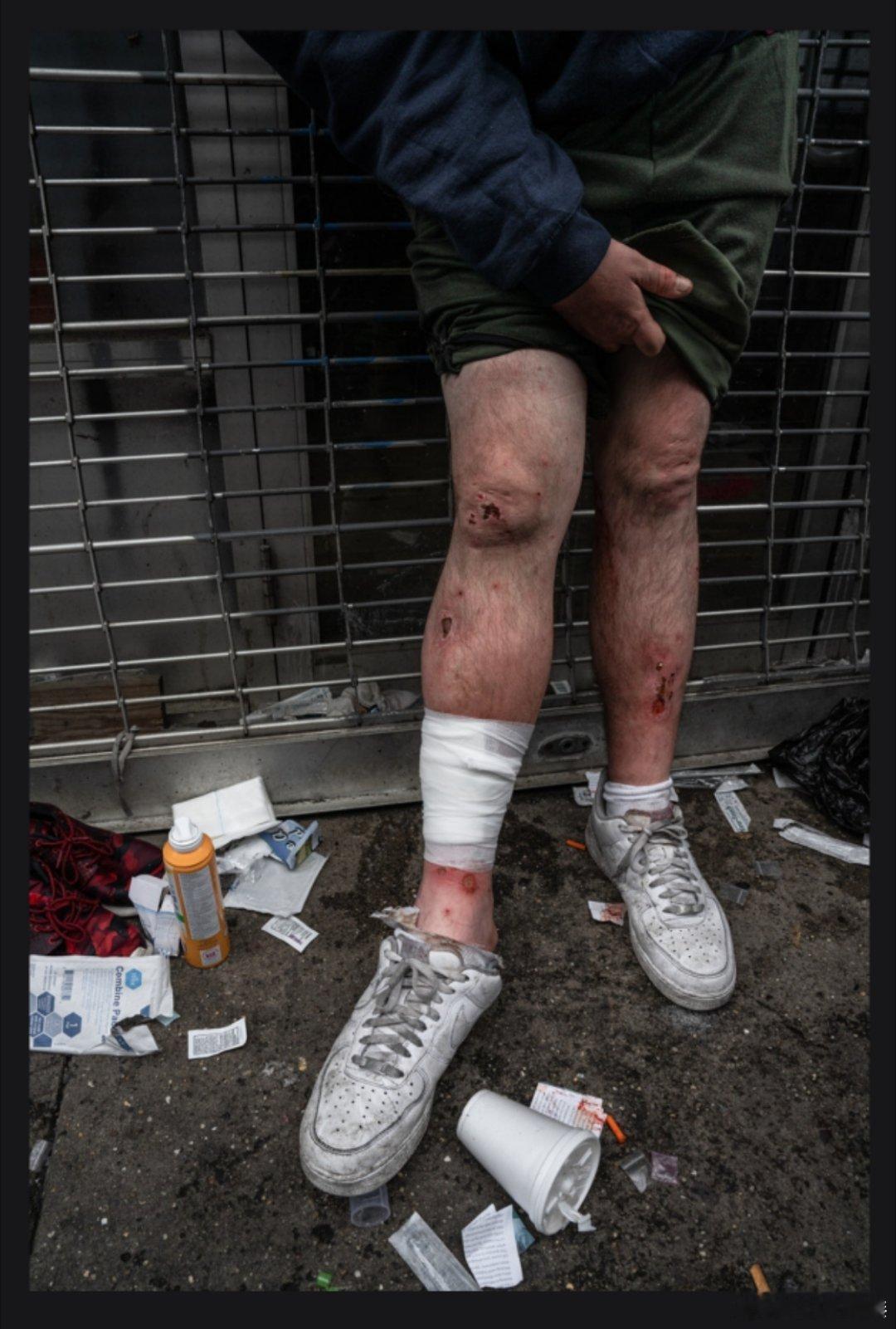 国外流浪者脚腐烂反被网络嘲笑人文摄影 这几天看了一些美国的街头摄影作品,发现很多涉du的美国人,身上都有溃烂的情况。这和du品的滥用、混用有关,一旦芬太尼和甲苯噻唑(甲苯噻嗪?我不知道我翻的对不对,欢迎纠正。还是汉语好,英文单词看一眼不知道是啥意思,得查,中国字儿一看就知道是药是化学品)混合使用、交替使用,皮肤的溃烂几乎是不可避免的。但是甲苯噻唑这玩意儿是兽用药,通常是给马用的,镇定作用,劲大得很,马吃了都镇定,更何况人。美国街头很多这样的人,最初身上烂个一星半点的,慢慢烂成大窟窿,最终烂死。照片上的马赛克是我打的,恶心让我一个人恶心好了。