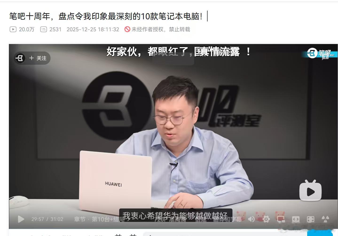 笔吧评测室十周年,猪王选了这十年给他印象最深的十台笔记本,而这最后一台就给到了华为今年的鸿蒙版matebook。情到深处,猪王也感叹外国软硬件依旧是垄断,自己和不少厂商只能算是买办,能看到华为这样自研硬件和系统的厂商,还是燃起了他心中的小火苗,最后祝华为越来越好。