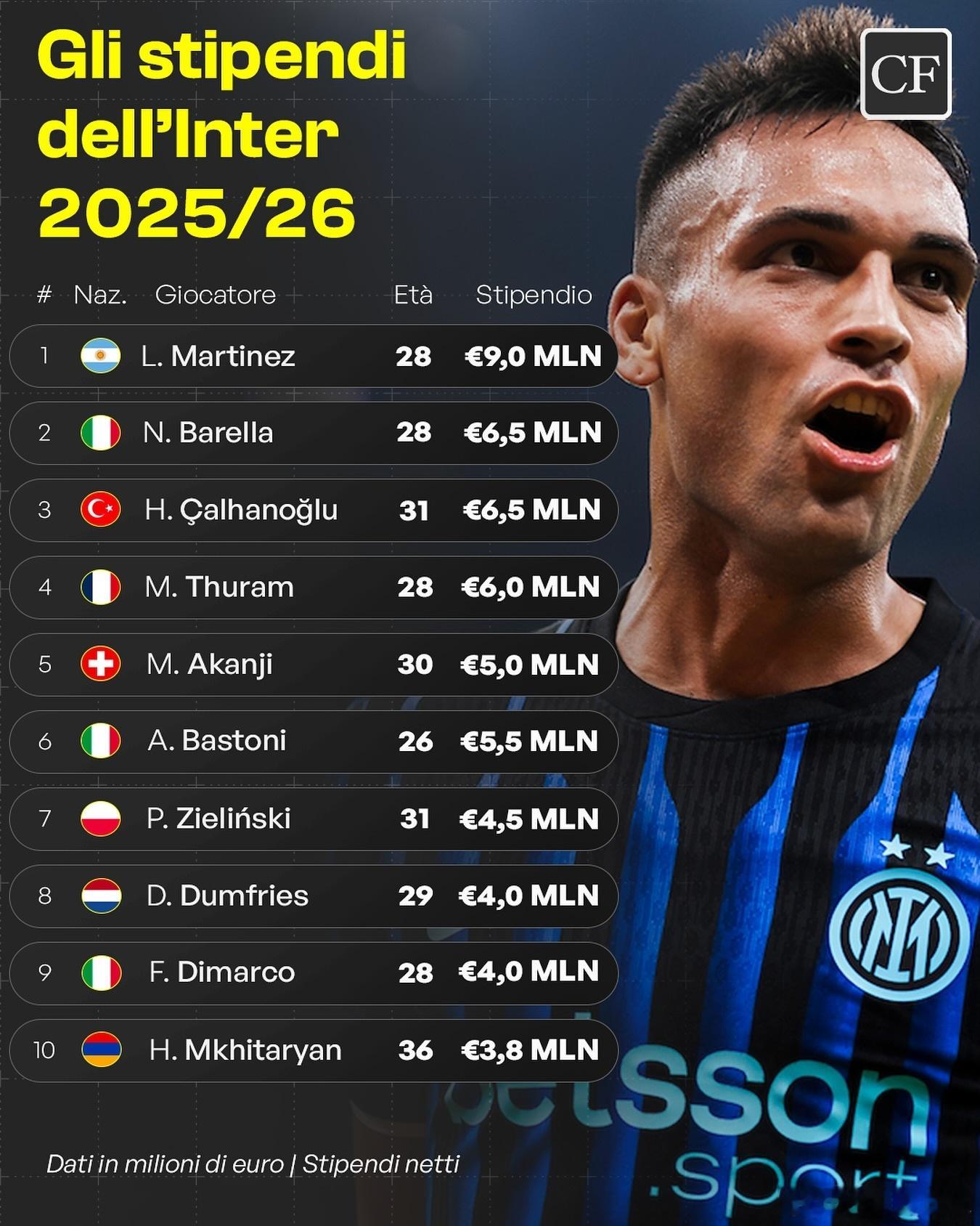 国际米兰年薪前10的球员国际米兰劳塔罗意甲