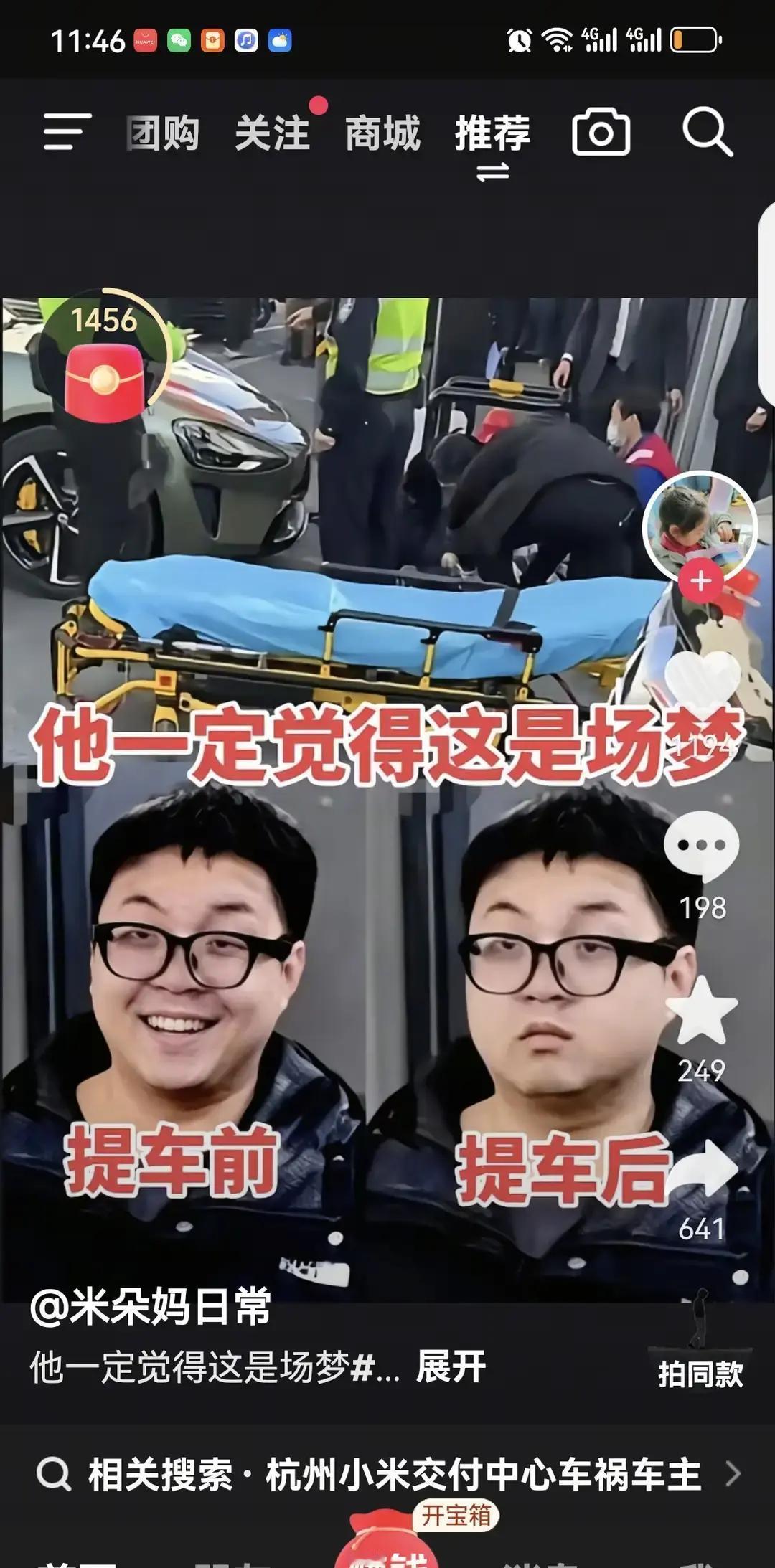 还没有走出车店,就发生了车祸,他呆若木鸡的表情也登上了热搜。