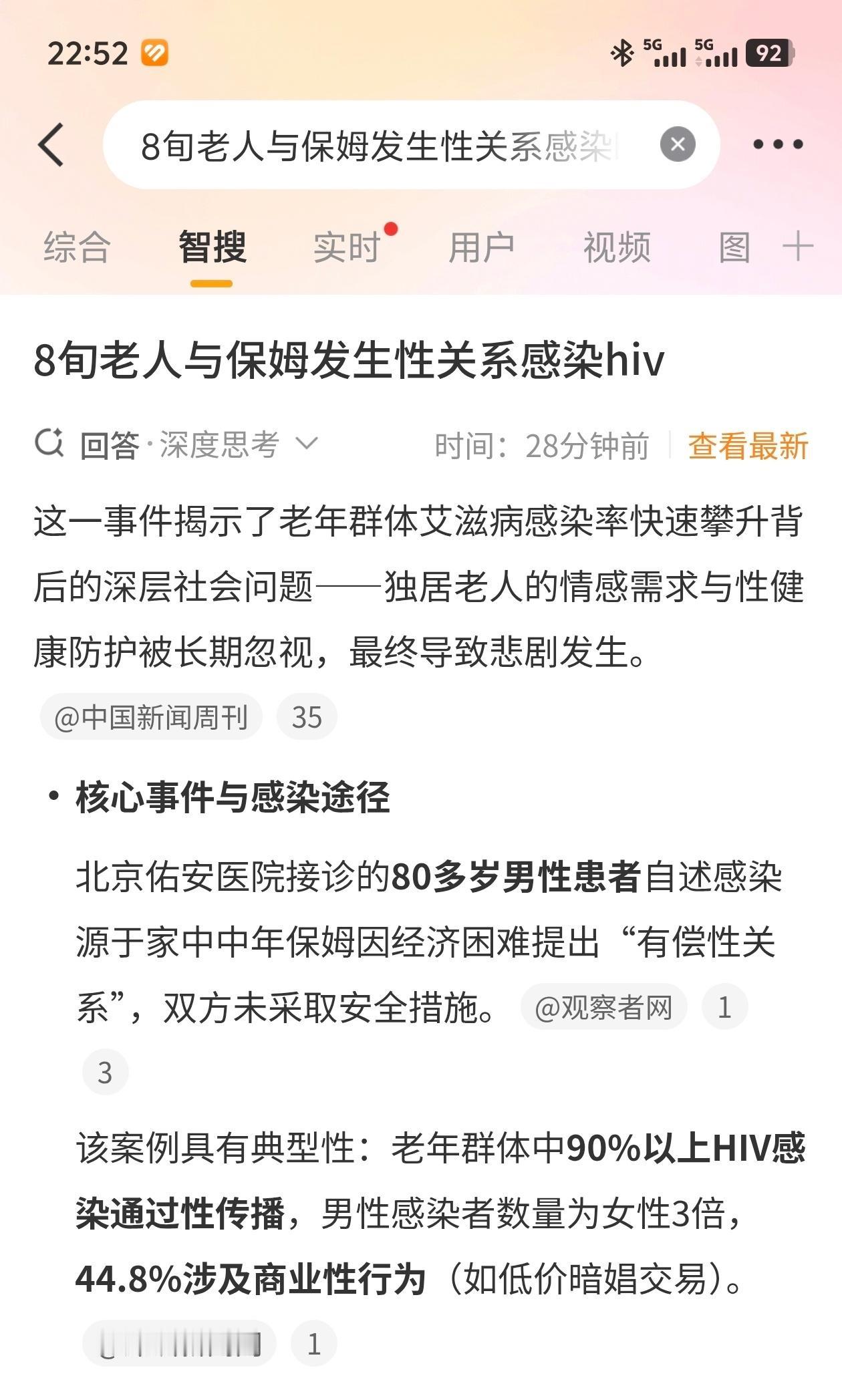 八旬老头把保姆“哄上床”,结果双双查出 HIV,整条街都在议论。故事听起来像地摊小报,可它真就发生在某老小区,连居委会大妈都说“活久见”。 老头姓刘,老伴走了五六年,儿女在国外,平时就一条老狗陪着。保姆姓王,五十出头,乡下进城,干活麻利,嘴也甜。刘叔每天“小王小王”地叫,王姨“刘叔刘叔”地应,一来二去,俩人把日子过成了“二人转”:早上一起遛弯,中午对着电视吃饭,晚上王姨还给刘叔捶背。邻居笑:“这哪像保姆,分明是老伴。” 可老房子里不止有饭菜香,还有寂寞味。刘叔怕孤独,王姨想留城,各取所需,于是夜里门一关,窗帘一拉,年纪差三十岁的两个人就滚到一张床上。刘叔觉得“我还能行”,王姨觉得“他对我好”,谁也没提安全套——都这把岁数了,怀啥孕?结果 HIV 就钻了这个空子。 后来刘叔总咳嗽,低烧不退,去医院顺便抽了管血,报告出来,医生把口罩往上提了提:“老爷子,您这得去疾控中心再查一次。”刘叔腿当场软了。王姨陪他一块查,结果也是阳。俩人对视那一眼,没有哭,也没有闹,就是呆坐着,像被抽了电的机器人。 消息不知被谁传出去,整栋楼炸了锅。有人说“老王家真惨,老了还中招”,有人说“保姆肯定以前就不干净”,还有人说“老头为老不尊,活该”。刘叔的闺女连夜飞回来,进门先哭后骂,骂完保姆又骂爹,最后一甩门把老爹连行李一起拖去医院。王姨那边更惨,被家属指着鼻子要赔偿,工钱没结,行李还被扔在楼道。 可病毒不认身份,也不认年纪。医生解释得直白:HIV 在老人圈子里不算新闻,只是大家不说。老头老太丧偶后找“伴儿”,又不好意思买安全套,觉得“都绝经了”“都硬不起来了”,结果病毒就悄悄串门。血液、精液、阴道分泌物,哪样都能带货, wrinkles 不是防火墙,白发也不是护身符。 刘叔听完问医生:“那我还能活多久?”医生答:“按时吃药,好好锻炼,再活十年二十年没问题,就是每天别忘了那一粒小药片。”刘叔叹气:“丢人现眼啊。”医生拍拍他肩膀:“病毒才是坏人,您只是晚年了才学会防它。” 王姨那头,疾控中心给她免费发药,还帮她联系同乡宿舍。她偷偷给刘叔发过一条语音:“刘叔,咱俩都好好活,别怄气,也别怨谁,要怪就怪咱没早点懂‘安全’俩字。”刘叔听完,把语音收藏在手机里,每天吃药前先点开听一遍,再仰头灌水。 不管十八岁还是八十岁,只要还谈恋爱、还滚床单,就得把安全当回事。别让寂寞钻空子,更别让病毒捡便宜。毕竟,老了也要体面,爱得安全,才能活得长远。老年保姆 晚年出轨保姆 保姆爱上雇主 来源:中国新闻周刊