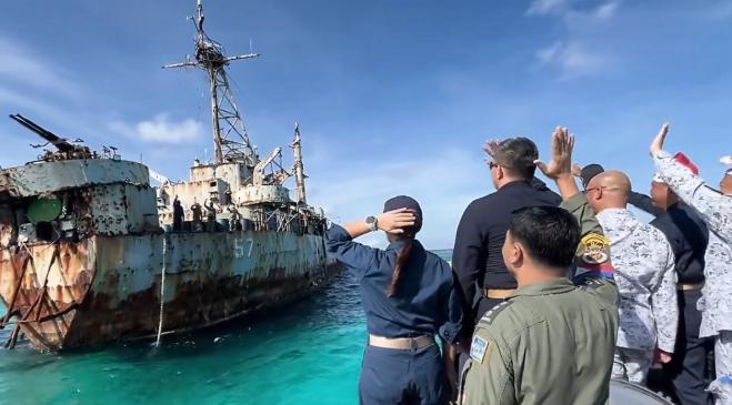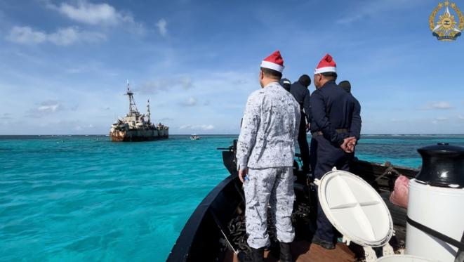 菲律宾摆拍造谣!菲律宾武装部队报道称,12月23日,他们向非法“坐滩”仁爱礁的“