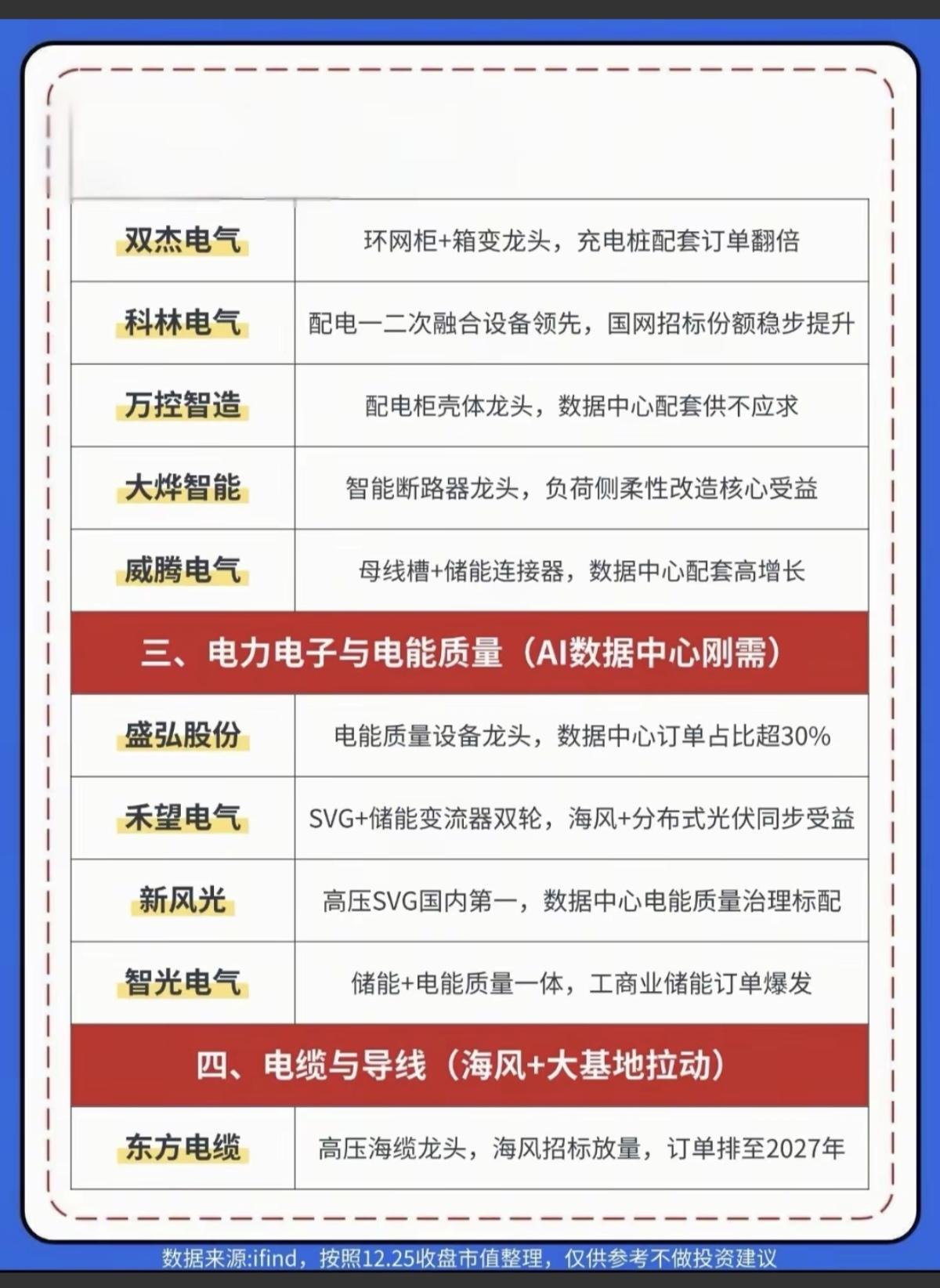 AI电力需求爆发!电网设备产业链! 1.特高压与主变压器 2.配网与负荷 3.电力电子与电能质量 4.电缆无导线 5.继电保护与自动化 相关核心关联受益股: