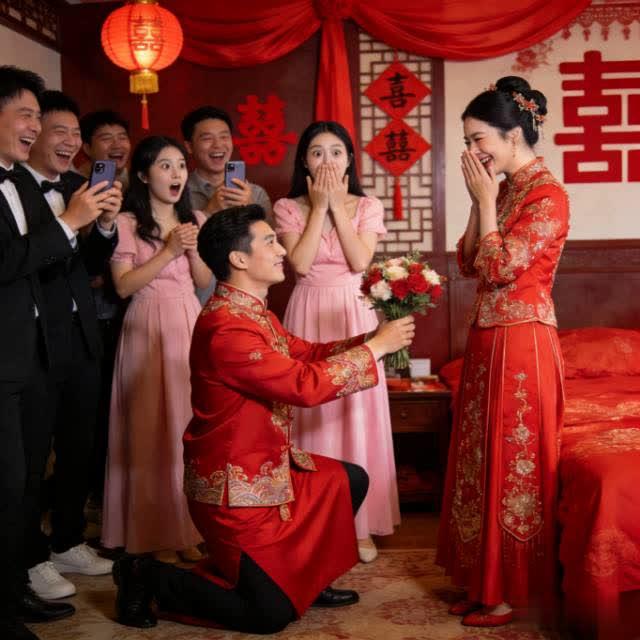 笑翻全场!新郎进门紧张认错新娘,慌乱背后藏着最动人的幸福模样 婚礼名场面又添新梗!新郎接亲推门瞬间太过紧张,径直走向伴娘认错新娘,手足无措的模样逗笑满屋亲友,这一幕看似滑稽的乌龙,却戳中了无数人心中最柔软的幸福,也道尽了婚礼里最真实的温暖与感动。 这份慌乱的认错,从来不是粗心,而是爱意满溢的极致体现。婚礼于每个新郎而言,都是人生中最盛大又最忐忑的时刻,满心满眼都是与爱人相守的憧憬,心跳加速、大脑空白的紧张感,恰恰印证了这份感情的真挚与珍重。比起完美无瑕的流程,这般猝不及防的小插曲,反倒让婚礼多了鲜活的烟火气,成为往后岁月里最珍贵的甜蜜回忆。 细想之下,婚姻本就如同这场慌乱的接亲,从初见的心动到相守的笃定,难免会有手足无措的时刻,会有磕磕绊绊的磨合,但那份满心满眼奔向彼此的赤诚,永远是感情里最坚实的底气。新郎认错新娘的乌龙,恰似婚姻的缩影:无关一时的慌乱,只关乎余生坚定的奔赴,哪怕前路有迷茫,眼里的爱意也能指引彼此走向幸福。 我们偏爱这样的婚礼瞬间,无关排场与仪式,只因它足够真实。那些笨拙的紧张、失控的笑意、猝不及防的乌龙,拼凑起婚姻最动人的模样——不完美,却足够温暖;有慌乱,更满是深情。这世间最好的爱情,从不是波澜壮阔的誓言,而是这般带着烟火气的相守,是慌乱中依旧坚定走向彼此的勇气。 这场可爱的乌龙,注定会成为新人一生难忘的甜蜜印记。愿他们往后余生,带着这份初见的悸动与欢喜,岁岁相守,温暖相伴。你参加过的婚礼上,还见过哪些爆笑又暖心的名场面?评论区分享出来,一起沾沾这份甜蜜喜气。