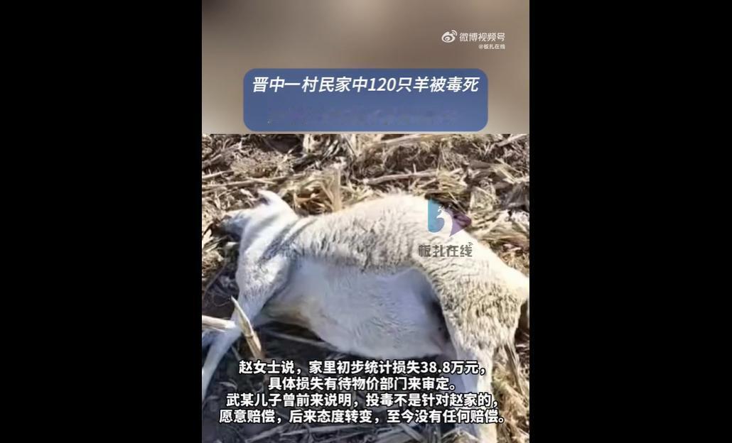 近日,西晋中市榆次区北田镇杜堡村一村民家200只羊遭投毒,120只当场死亡(含110只孕羊、10只公羊),剩余80只母羊全部掉胎,初步损失约38.8万元,具体损失待物价部门审定。 警方1天内破案,锁定投毒者为村民父亲的同村好友武某,其以毒玉米粒藏于地中作案。目前武某已被检察院批捕,其家人曾承诺赔偿后反悔。 有人说,有时候商人最厉害的往往是你亲近之人,这次又一次应验了这句话! 这武某天天跟人家父亲喝酒唠嗑,称兄道弟套近乎,让人家觉得很可亲。没想到却是一个不折不扣的小人,阴毒之人,看见朋友家依靠养羊赚了钱,心里就不平衡了,凭什么你能过好日子,我却不能? 于是,就细细回忆之前的一些小龌龊,便恨上了朋友,接着就揣着最毒的心思,把拌了毒药的玉米粒藏在地里,专挑放羊的地方下手——120只羊短时间内纷纷毙命,110只怀孕母羊连带着腹中羊羔一起惨死,80只母羊尽数掉胎,这哪里是针对牲口,分明是要断人全家活路! 他的这一番恶操作,把朋友一家害得不轻。 38.8万的损失,对城里家庭来说都不是小数目,更何况是靠借钱养羊谋生的农村家庭? 羊是全家的经济来源,是父亲东拼西凑借来钱买的,家里还有弟弟妹妹要上学,学费生活费全指望这些羊。 这无妄之灾,硬生生把一个普通家庭逼到了绝境! 这武某必须为自己的恶行付出惨重的代价!