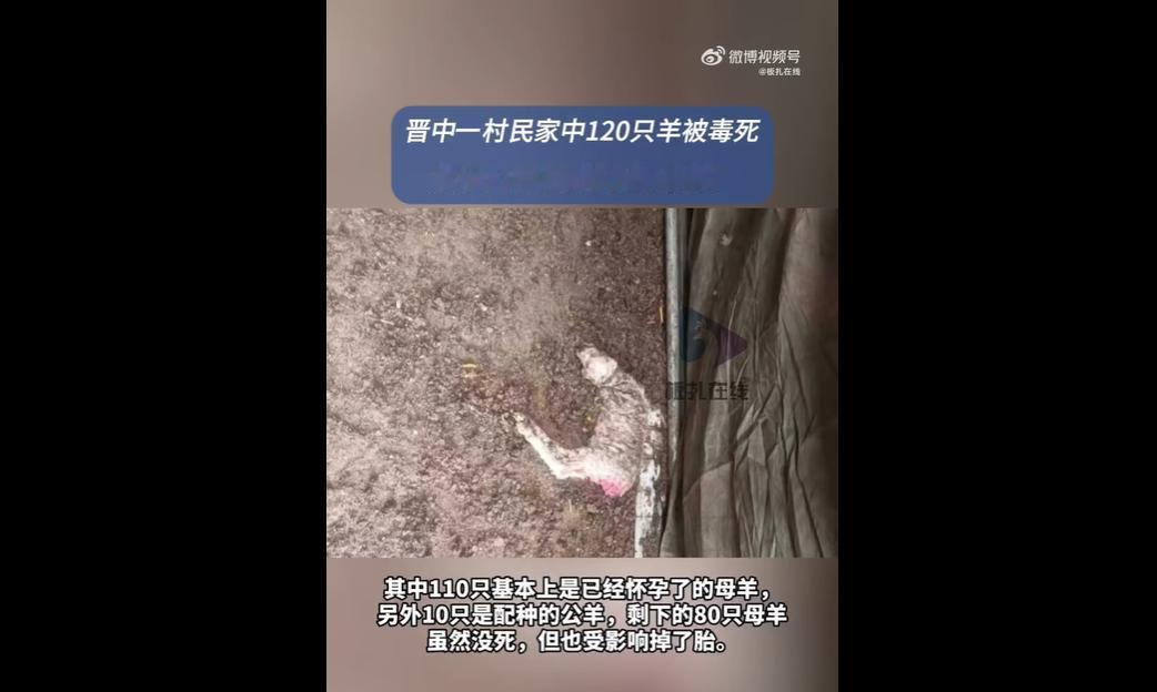 近日,西晋中市榆次区北田镇杜堡村一村民家200只羊遭投毒,120只当场死亡(含1