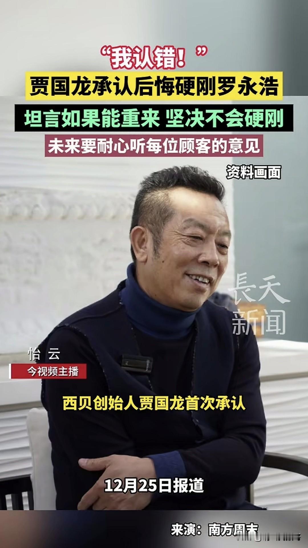 知错能改善莫大焉?西贝创始人贾国龙如今低头认错,我觉得不是他知道自己错了,而是单纯的觉得不应该硬刚罗永浩。现在他说要跟顾客、员工和自己认错,还表示要向胖东来学习。这怎么看都更像是扛不住舆论压力,而非真心认识到自身经营和态度上的错,就是不想再硬刚下去了。因为再刚下去的话,西贝就永远别想崛起了。