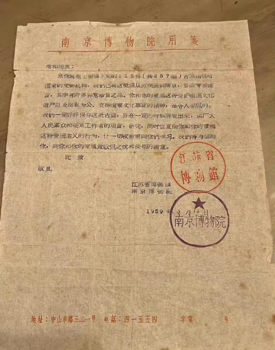 南京博物院向捐赠者表示:“我们一定好好保存这批古画”“让一切收藏家向你们学习”