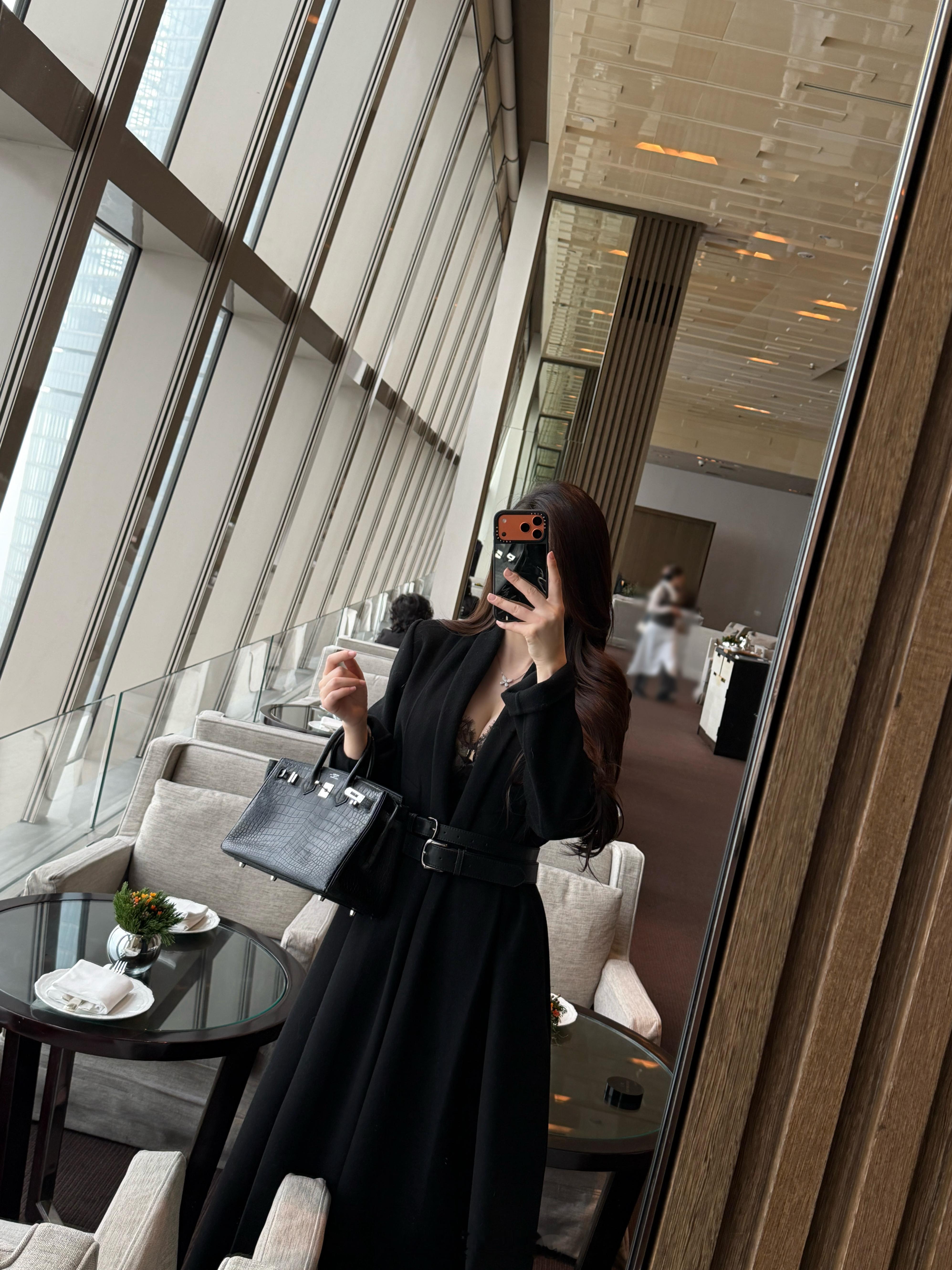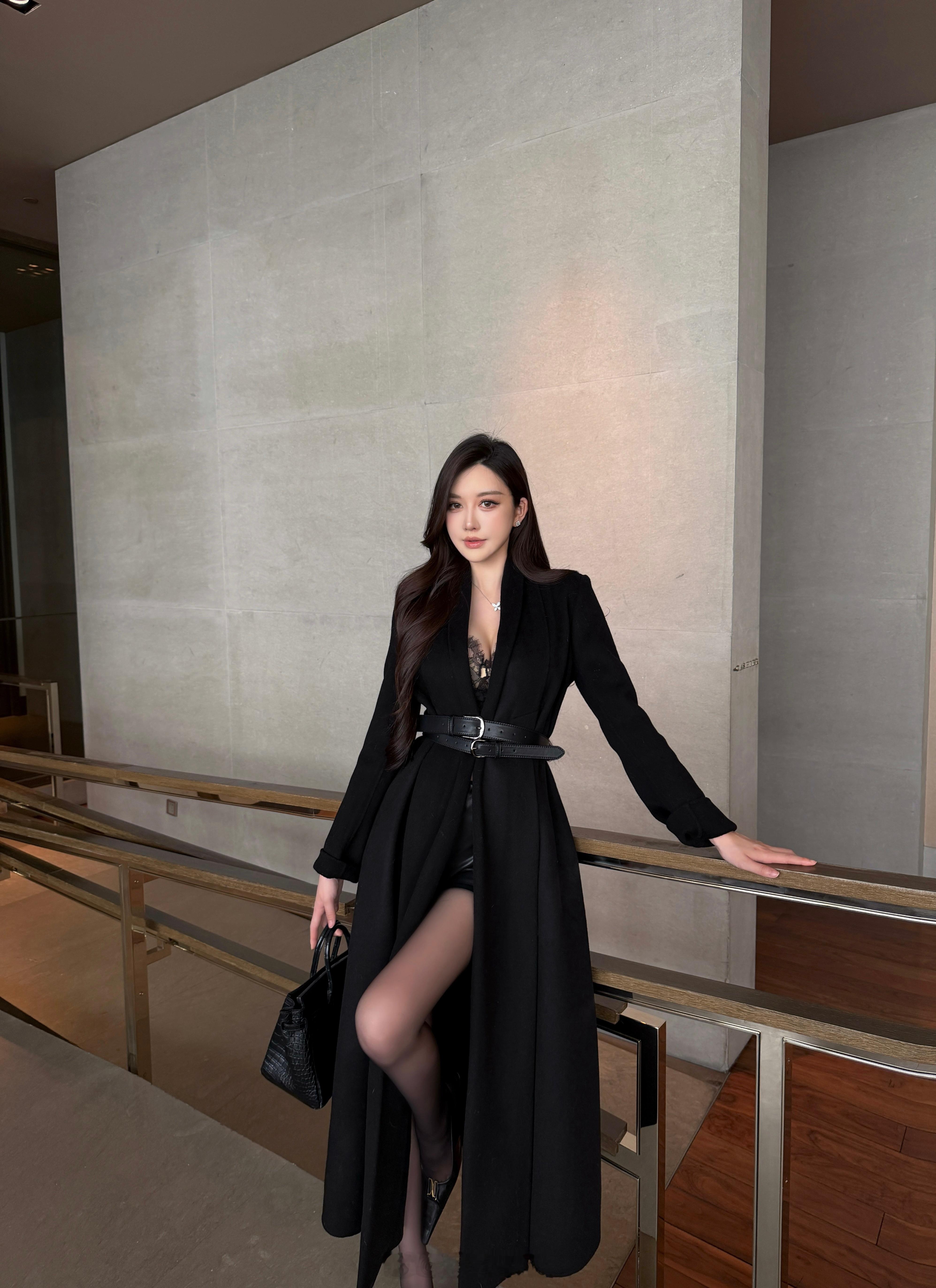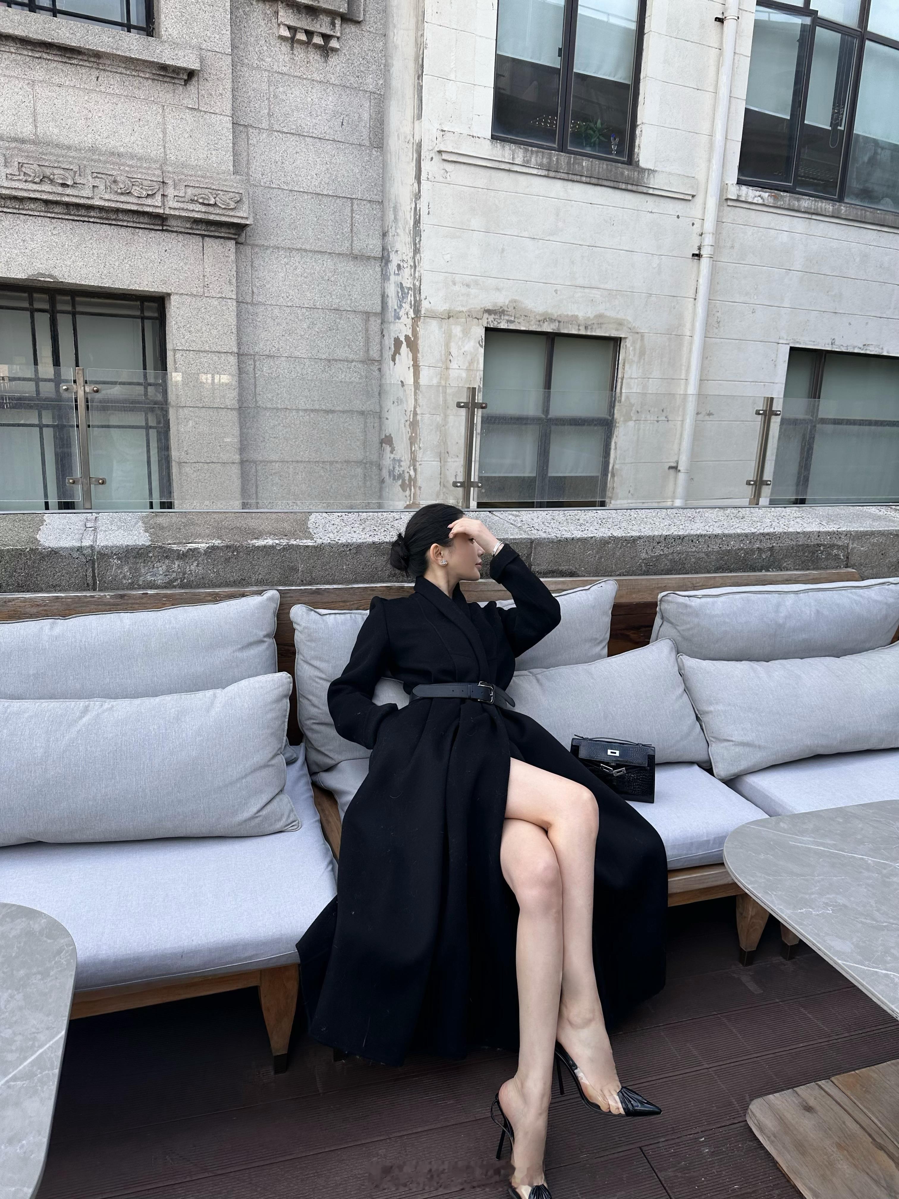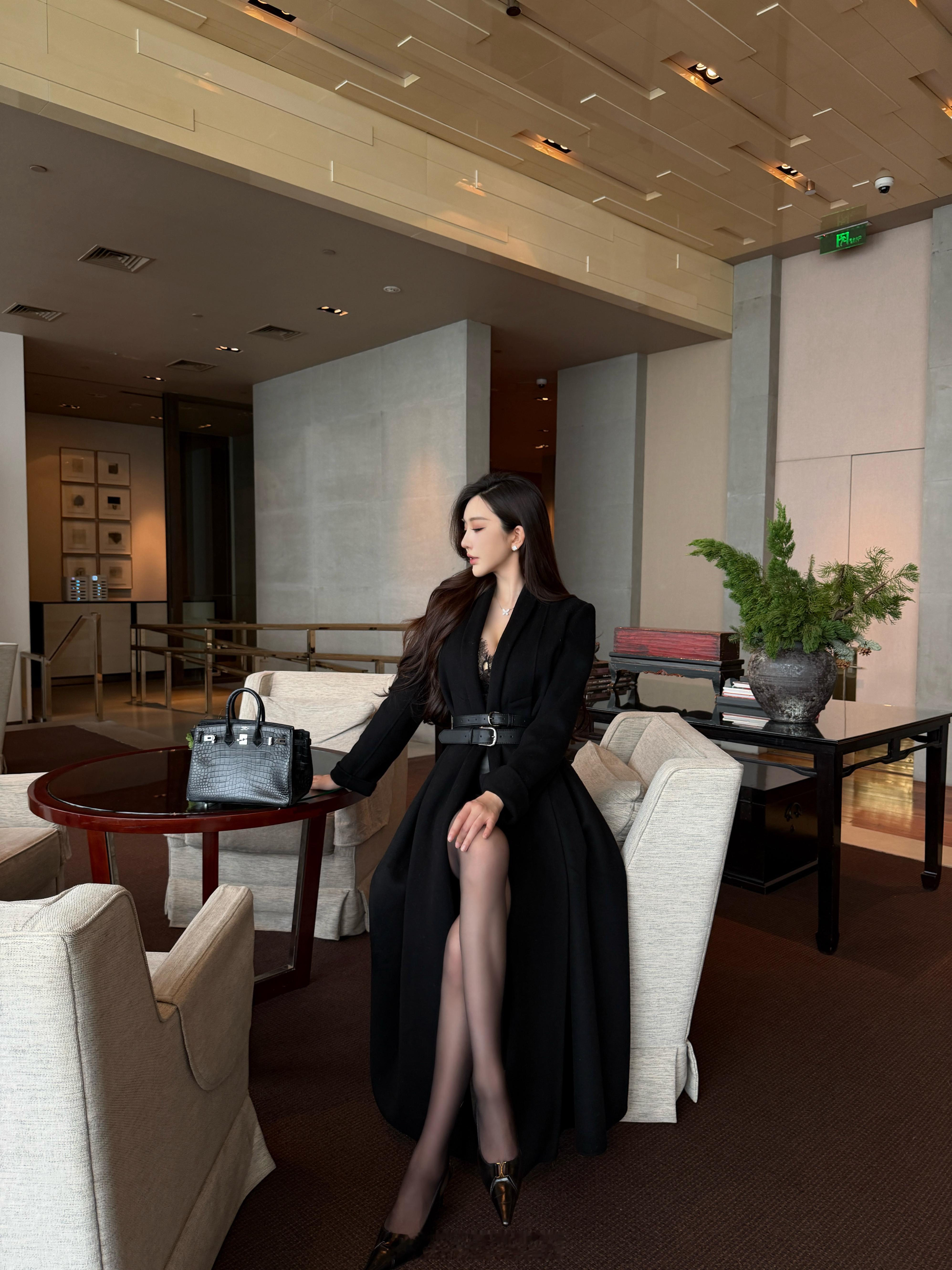 怎样完成气质风穿搭秋日森林中的时尚女郎,黑色长靴与大衣相得益彰,尽显优雅与自信。