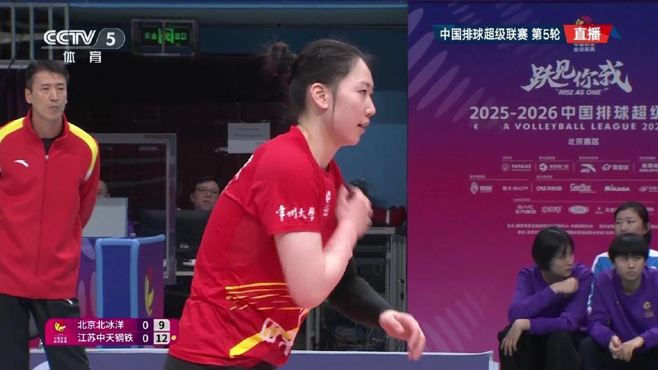 女排联赛第5轮:首局江苏女排25:18北京女排先下一城 2025-2026中国女子排球超级联赛第五轮,北京北冰洋女排主场迎战上届联赛卫冕冠军队江苏中天钢铁女排。这场比赛对于双方来说都非常重要,毕竟他们都输给了上海女排。 北京北冰洋女排近两场首发阵容比较稳定,今天对阵江苏中天钢铁女排的比赛仍然用了以下首发阵容: 主攻:金烨、贝吉奇 副攻: 单琳倩、 金佳宝 二传 :邹佳琪 接应 : 武林 自由人:刘立雯 江苏女排吴梦洁,唐欣,杨佳,万梓玥,张籽萱,周页彤、倪非凡首发。开局双方杀的难解难分,比分一直胶着至8:8。江苏女排开始发力,将比分逐渐拉开至15:11,北京女排叫了第1次暂停,暂停之后效果不好。吴梦洁三连发,江苏女排继续将比分拉开至22:15,最终江苏女排技高一筹,25:18拿下首局。 比赛正在进行,这场比赛到底胜负如何,喜欢的友友可以打开电视机,看中央电视台体育频道的现场直播。 江苏 中国女排