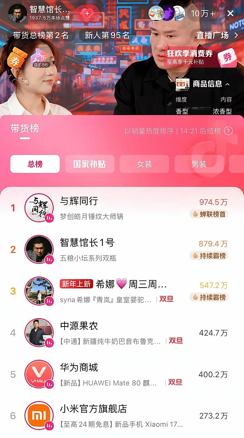 馆长今天以阿馆“学”带货,好物“馆”选,首场带货直播,大陆网友的热情刷新了馆长的认识。 之前馆长曾经认为,首场直播搞个5万件就够了,有网友则留言说道:“5万件会被秒杀”,这令他难以置信! 然而,馆长此次直播短时间内就超上百万件,带货榜稳居第二名达879.4万,在线人数10万加,粉丝也破百万之多。首次带货直播短时间内达这么好成绩,体现出大陆网友对馆长的认同及支持。 馆长在直播中感言,在大陆直播与台湾不同,这里的商业竞争是全世界最激烈的,也头一次知道买回去东西比如饼干吃了十包后还可退货,鞋子允许试穿时间比较长、不合适还可退货等,这比台湾直播卖货给的时间比较宽松。 其实,也希望馆长直播取得好成绩,这样就有更大能力支持两岸和平发展。