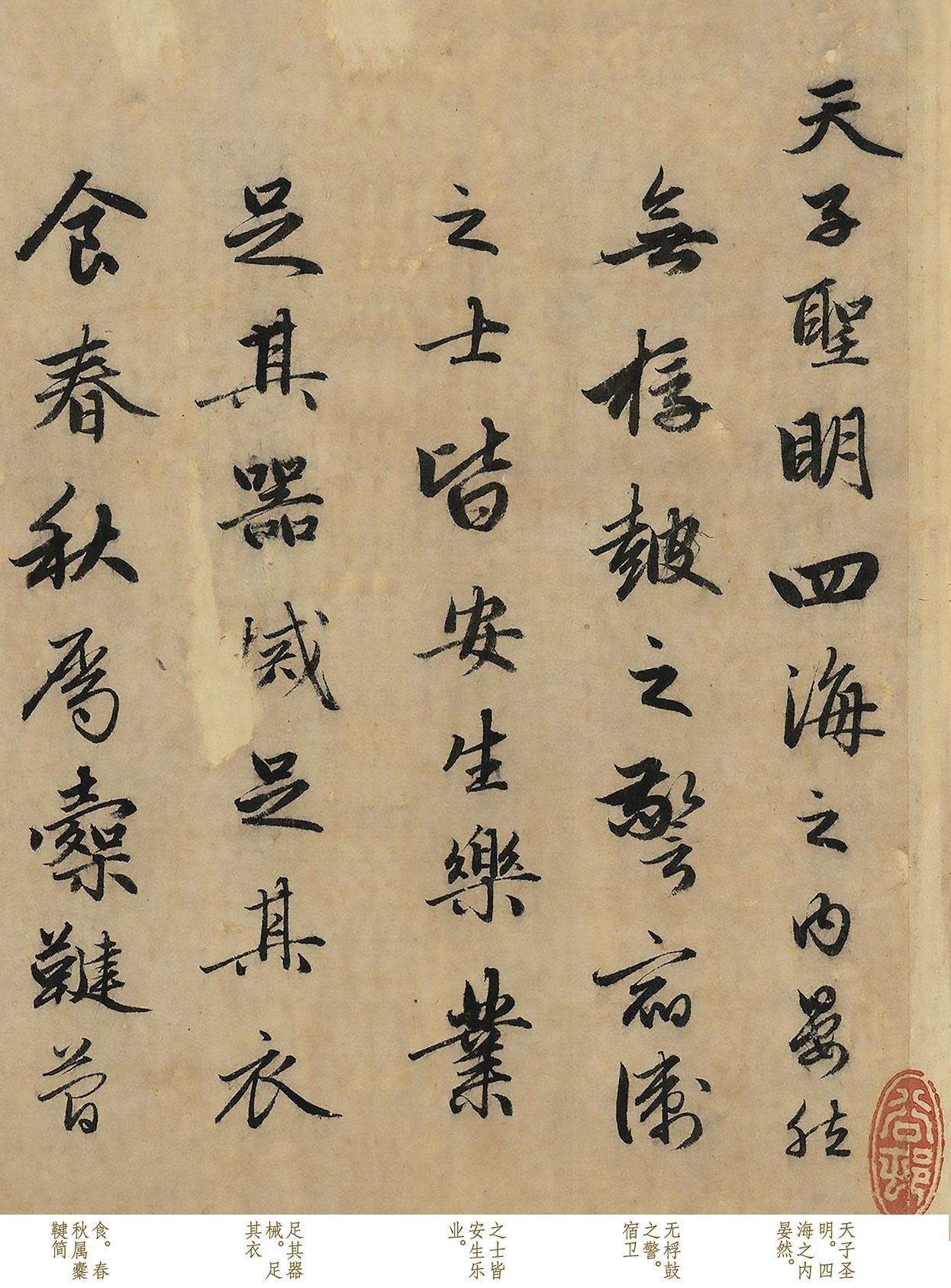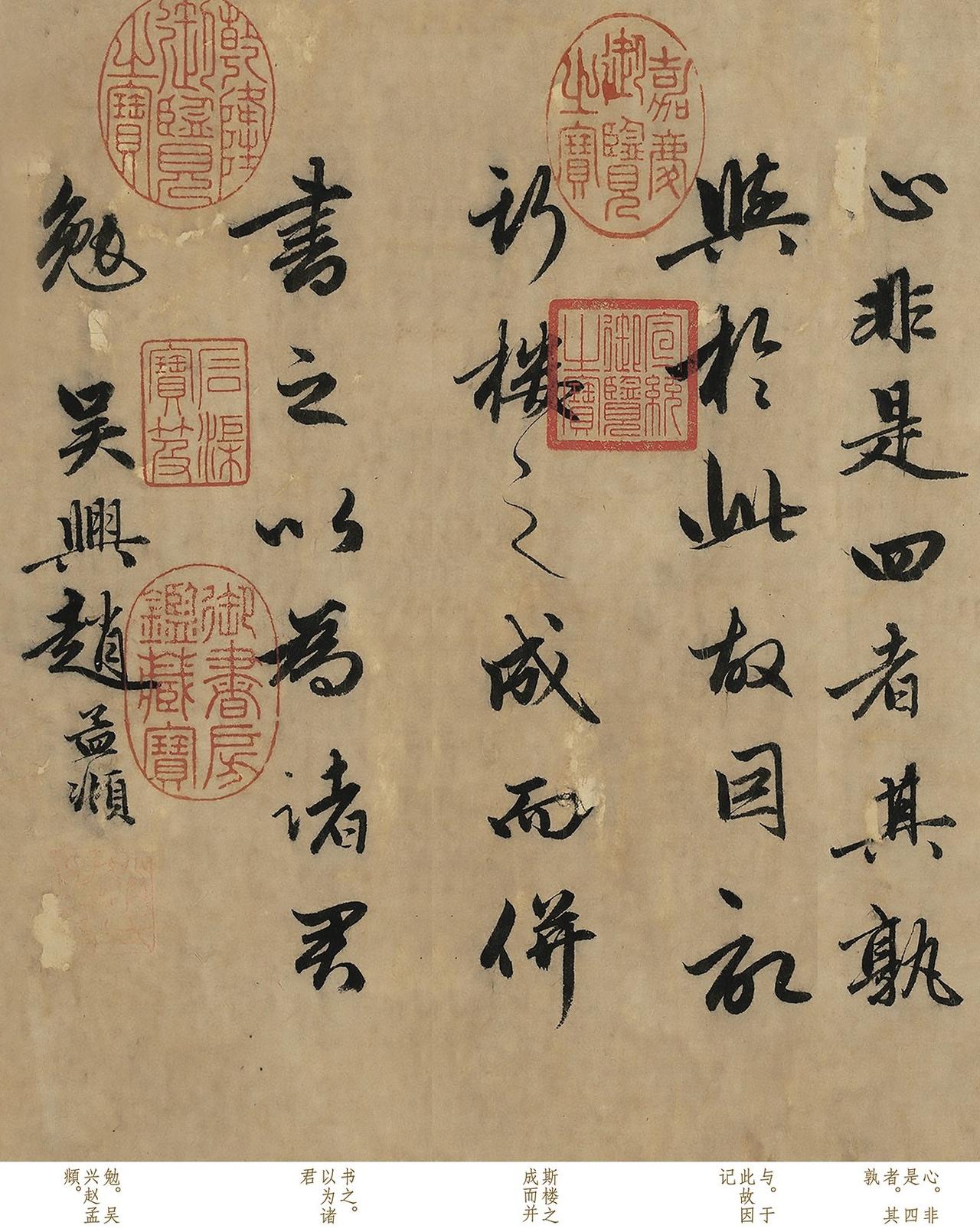 这才是“赵体”行书天花板,每个字都让人着迷,专家:也就王羲之能与他比! 赵孟頫是宋代以后唯一能称得上“宗师”的书法家,他复兴晋唐古法,纠正“尚意书法”导致的粗率之气,让“二王”、李邕等人的书风再次“统治”书坛。 而在字外,他还精于绘画、古文、鉴定、音律,它们又滋养了其书法,所以赵孟頫的内涵丰富、气息醇和,书卷气十足。 现藏于台北故宫博物院的《明肃楼记》,正是其行书天花板,也被誉为“赵体扛鼎之作”。这件作品是赵孟頫应元朝卫帅之请,为永清县后卫屯田营地的明肃楼所撰写的记文,完成于至元二十二年(1285年),时值赵孟頫笔力的巅峰期。 此作纵约29厘米、横约297厘米,共74行、514字,字径大约2厘米,这件《明肃楼记》用笔精纯,从容衍裕,用笔也是纯正的晋人技法,变化精微,每个字深入其肌理当中,都会令人着迷,启功表示,从整体气质而言,也就王羲之能与之相比了。 起笔轻顿后顺势铺毫,中锋饱满,行笔中提按变化细腻自然,节奏舒缓平稳,由轻渐重再轻收,过渡无痕,尽显“绵里裹铁”的质感。 收笔轻锋出挑,笔画之间牵丝映带,启功评价:“松雪行书笔法,妙在无一笔有刻意之痕,圆转处如行云流水,劲健处似铁画银钩,将‘刚柔相济’诠释得淋漓尽致。” 这种笔法既坚守了晋唐古法的核心,又摒弃了过于刻板的法度束缚,更贴合元代文人的雅致追求。结字匀称、楷行相融,字形端庄规整,笔画分布错落有致,无拥挤或松散之感。 字势欹正平衡,通过重心微调实现整体稳定,如“清”字左低右高,却以右侧重笔笔画稳稳支撑,尽显灵动而不浮躁。 墨法浓淡相宜、温润沉厚,整幅作品墨色饱满均匀,在书写情绪舒缓处,墨色略淡,行笔稍快,局部墨色晕散,增添笔墨情趣。 浓墨凸显笔法的圆劲,淡墨与涨墨则赋予作品灵动变化,让整幅作品既有视觉冲击力,又不失温润质感。 清代梁巘在《评书帖》中直言:“赵松雪行书,集晋唐之大成,为第一妙迹”,将文人的雅致与书法的技法完美融合,还深刻影响了后世书家,从明代的文徵明、董其昌,到清代的王文治、梁诗正,都能看到他的风格。 《明肃楼记》是书法学习者研习行书的重要范本,其蕴含的笔法精髓、结字规律与墨法理念,可以帮助我们“直入晋唐”。 而今,我们将藏于台博的这件赵孟頫《明肃楼记》的原作,进行超高清的1:1原大复刻,并配以逐字释文,以供大家学习临摹。 (新)赵孟頫行书明肃楼记带释文 高清1:1复刻艺术字帖便于临摹
