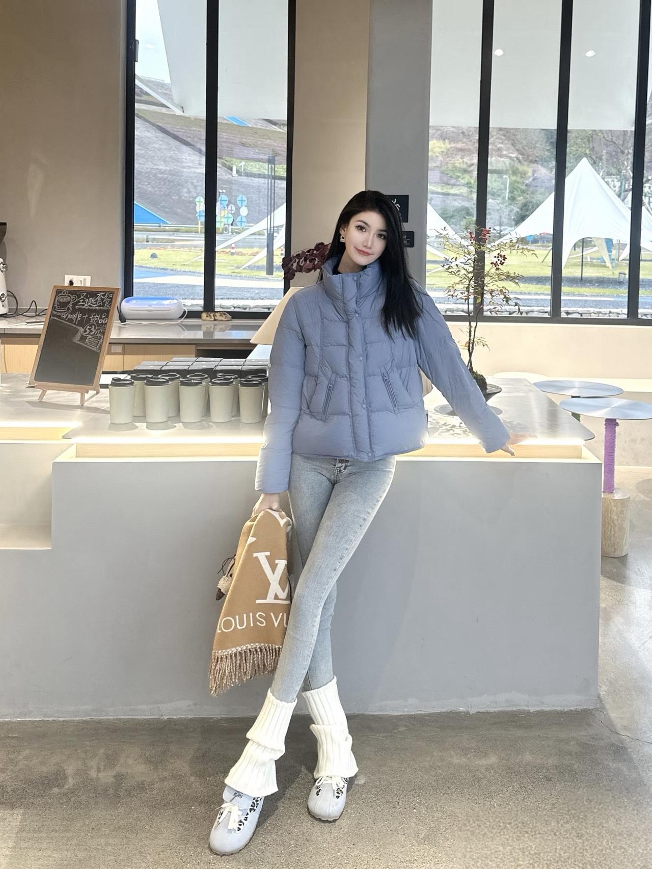 冬日想要穿出氛围感,这套搭配闭眼入!浅蓝色羽绒服宛如冬日晴空,给人清新治愈之