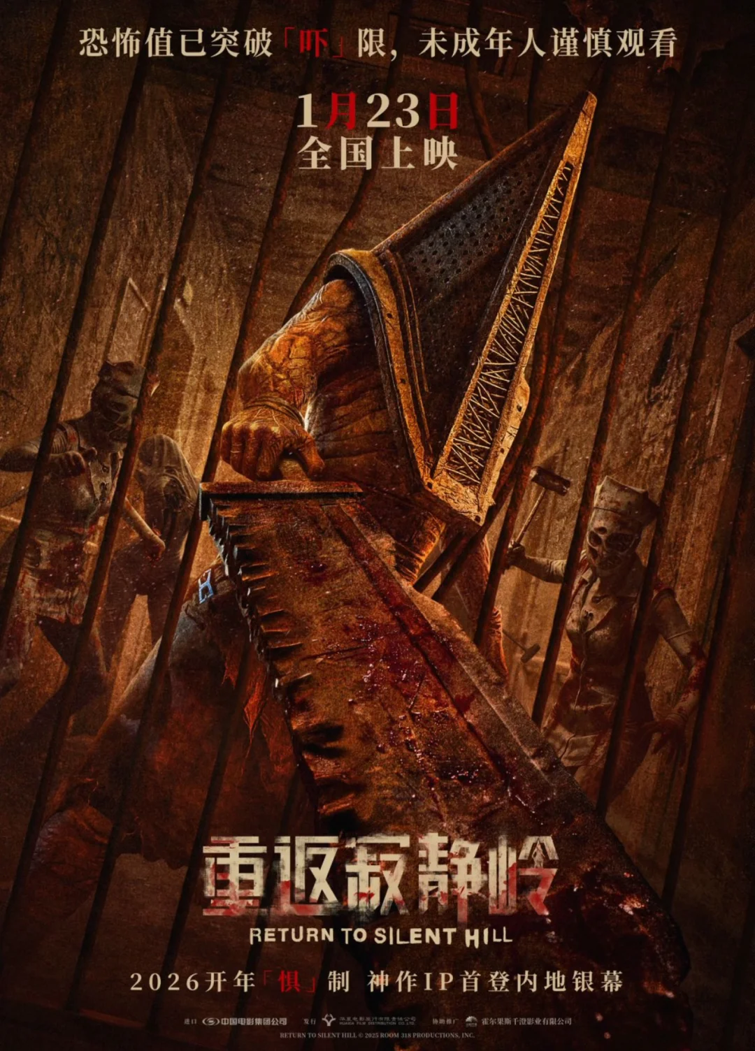 2026开年就被这波恐怖巨浪狠狠拍醒!经典恐怖IP“寂静岭”新作《重返寂静岭》定档1月23日,和北美同步上映!前两部寂静岭系列电影都没能在内地公映,一等就是20年啊!这次《重返寂静岭》终于让我们有机会在大银幕上感受那份极致的恐怖与震撼! 玩《寂静岭2重制版》和《寂静岭f》的时候,就被那诡异的氛围、扭曲的怪物和扣人心弦的剧情深深吸引,现在不用键盘鼠标手柄,直接在大银幕上“沉浸式”跟随主角詹姆斯踏入迷雾笼罩的寂静岭小镇,这种沉浸式体验简直爽到爆!还有熟悉的三角头和护士! 《重返寂静岭》就像是一把钥匙,打开了通往那个恐怖世界的大门。1月23日,记得带上游戏手柄,我们一起去电影院“沉浸式”通关寂静岭!在黑暗中与恐惧正面交锋,看看自己到底能坚持多久!证明自己不是胆小鬼的时候到了!