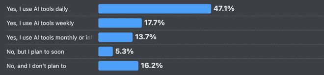 关于AI工具的渗透率,数据给出了毫无悬念的答案。