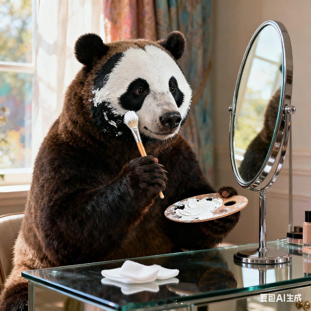 日本动物园让人扮大熊猫供游客互动没事儿孩子们,等我捯饬一下