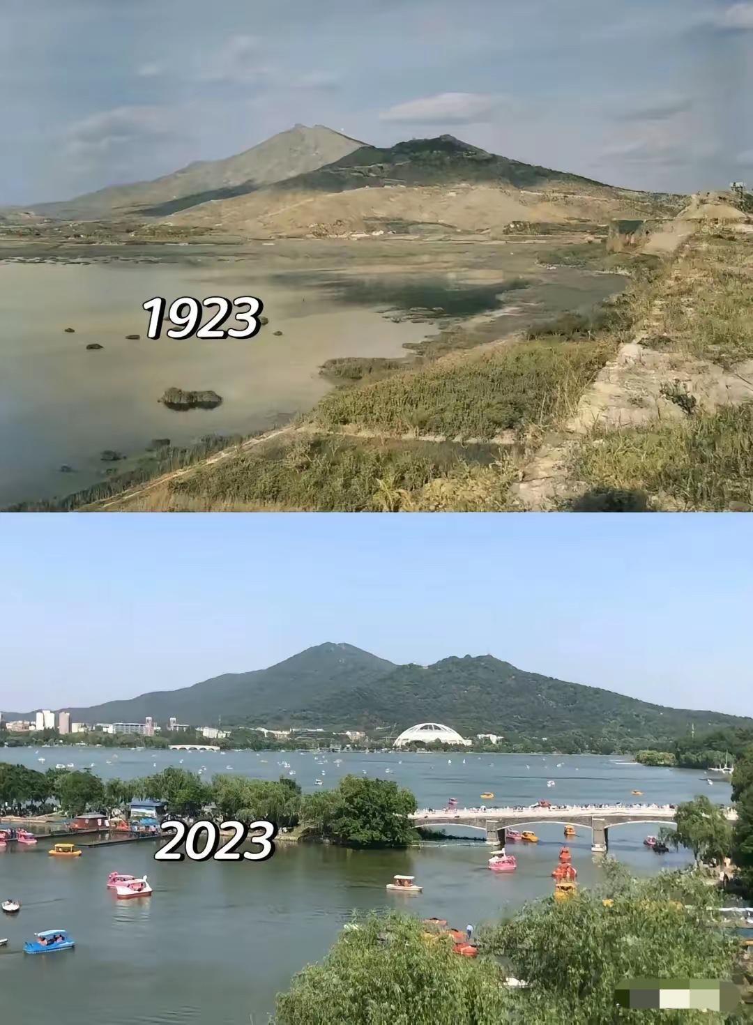 100年沧海桑田,变化真是天翻地覆! 原来不单单北方光秃秃,连南京那时候也是草木稀少,不少网友说,都是煤气的功劳,过去家家户户烧柴做饭,山上的树木能存活下来真不容易!