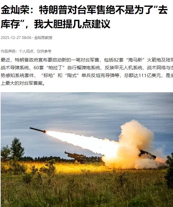 今天,金灿荣教授说:“美国售台的82套海马斯火箭炮、60套帕拉丁自行榴弹炮、反装甲无人机及标枪、陶式导弹等装备,虽然并非最先进,却能严重威胁解放军登陆行动与装甲部队,其目的绝非去库存,而是为台独撑腰,迟滞统一进程、消耗我军战力,中方光抗议谴责远远不够,我建议,可通过制裁涉事美企、向委内瑞拉等国提供军援、在台海登临检查售台武器船只等方式进行反制,绝不能让此事轻易过关!” 台海局势最近又起波澜,这回,不是台湾自己闹腾,而是美国又一次在背后“拉偏架”——向台湾大批送武器,这不是普通的买卖,而是摆明了要插手中国的家务事,让原本就紧张的两岸关系火上浇油。 很多人可能不太清楚,美方这次送的可不是几架旧飞机、几辆二手坦克,而是一整套有针对性的重型武器,打的就是解放军登陆和装甲作战的主意。 这事的严重性,不在于武器多先进,而是它的意图太明显,美国嘴上说不支持“台独”,转头就把实打实的军火送过去,这不是自相矛盾是什么? 你说你不帮人打仗,但你把刀都递过去了,还教人怎么用,这分明就是冲着“打”去的,有些事,不用说透,做出来大家心里都明白。 从过去几年的动作看,美国已经不满足于在口头上干预台海事务了,它现在是实打实地在动手,每一次对台军售,都是往火堆里加一把柴。 这回的力度比以往都大,规模也更吓人,很难不让人联想到,他们在搞一场“提前布阵”,美国不是不知道台海局势的敏感程度,它越是这样搞,只会让局势越发紧绷,说白了,就是在逼中国做选择题。 这时候,金灿荣教授的一番话就特别有分量,他不是在喊口号,而是把问题讲透了,他说,这些武器不是摆着好看,它们的作用就是阻挠解放军的行动,耗光中国的耐性和资源。 说白了,美国不是想打一仗,而是想拖住中国,拖得越久越好,你统一没法动手,台独那边就能继续活蹦乱跳,美国也能继续当“裁判”,一边拉偏架一边当好人。 可问题是,中国早就不是几十年前那个任人摆布的角色了,你动手,中国也有的是招,抗议、表态是基本操作,但这次情况不一样,不能光靠说。 于是,反制措施来了。涉及军售的美国企业被点名,制裁直接上手,不光不让他们在中国挣钱,还限制他们未来的商业合作,这不是冲动,而是有理有据地亮了底牌。 话说回来,美国这一套,真是又熟又旧,每次台海局势一有点风吹草动,他们就来添油,可惜这回,火没烧到中国,却把自己手上的油桶砸了个底朝天。 你说他是真的为了台湾安全吗?恐怕更多是为了自己的地缘算盘,台湾越乱,中国越被牵制,他们就越能掌控节奏,这种借刀杀人的策略玩了几十年,只是眼下,中国的刀不好借,台湾的命也不好赌。 台湾那边,现在最需要冷静下来想一想:这条路到底要不要走下去?靠买武器就能保平安,这种想法太天真了,历史上,那些靠外援撑着的地区,哪个不是最后被放弃的? 美国看起来是朋友,实则是生意人,今天送你武器,明天转身就能谈判卖你出去,真正的安全,靠的是回到现实,承认两岸同属一个中国,而不是幻想靠外力“独立”成真。 中国的立场其实一直没变:统一是早晚的事,和平是首选的方式,但和平不是天上掉下来的,它需要双方都有诚意,你一边说要和平,一边买枪备战,这哪是谈判的态度? 这次军售事件之后,中国该有的动作一个不少,除了制裁企业,还有更深层的外交和策略布局,这不是为了“斗气”,而是为了立规矩,告诉所有人:碰红线,就要付出代价,不过,中国不会为了某个挑衅就马上动手,但也不会等到局势失控才反应。 这次释放的信号很清楚:不管是谁,只要插手台湾问题,就别想轻松收场,不只是美国,其他国家也得掂量掂量,台湾不是谁都能碰的牌桌,它是中国内部事务,别人没资格插嘴,更没资格插手。 从这次事件看,美国的对华策略已经不是“防范”,而是“干预”。他们想通过台湾这根杠杆,撬动整个东亚局势,让中国疲于应对,这种做法短期可能有效,但长期来看,只会让中国更强硬,也让统一的脚步更快。 这不是赌气,而是逻辑,你越是阻挠,中国就越清楚自己的方向和节奏。 而对于民众来说,这场看似遥远的军售,其实离我们并不远,它关系到国家的完整、安全,也影响着我们的未来,一个国家如果连自己的领土都守不住,谈什么发展、谈什么和平? 所以,中国的反制,不是为了炫耀实力,而是为了守住底线,这条底线,一旦被突破,代价不是一两个企业的利益,而是整个国家的安全感。 也有人担心,会不会因此引发更大冲突?这其实是美国乐见其成的效果,他们希望中国出手,然后再把责任甩过来,这种套路,大家都看得清。 中国不会轻易上当,但也不会忍气吞声,必要的时候,我们有能力、有准备,也有决心去应对一切挑战,这不是夸口,而是现实。 在这个节骨眼上,台湾方面若还有一点政治智慧,就应该认清楚局势,别再跟着美国跑,你可以幻想几年,但不能幻想一辈子。