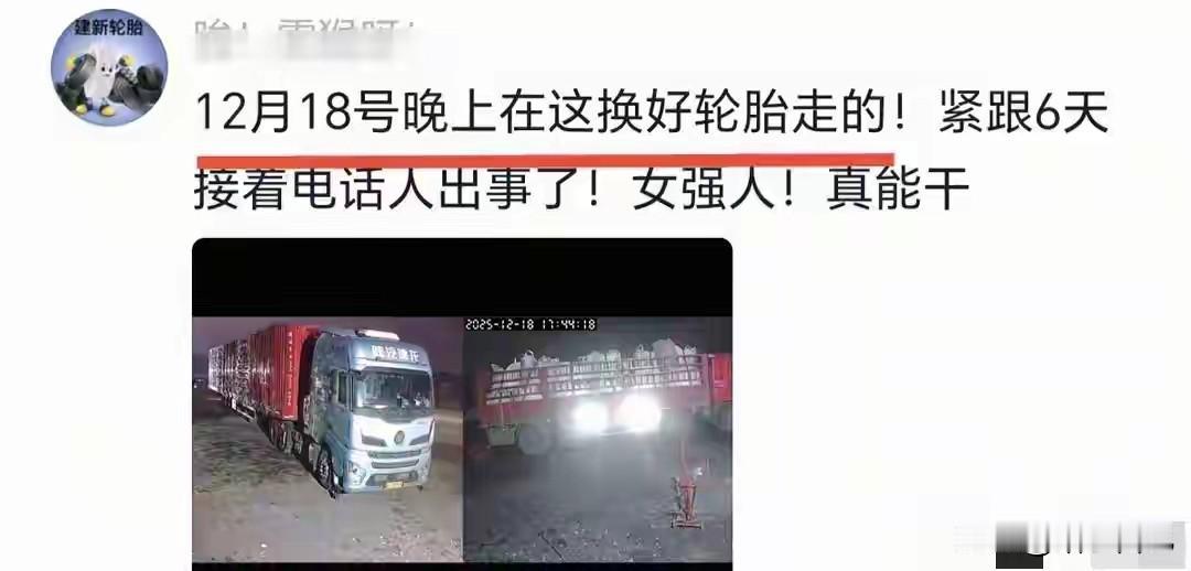 痛心!安徽“半挂西施”王迪走了,六天前刚换完轮胎,留下三台X6000 “半挂西施”王迪走了!6天前刚换好轮胎,3年跑新疆没顾上结婚,卡友哭了:还没喝上她的喜酒 卡友圈这两天揪着心——那个总画着精致妆、开半挂跑新疆的“半挂西施”王迪,12月23日在高泉冰雪路上没了。谁能想到?6天前修车店老板才给她换的新胎,她还帮过卡友打通江浙沪到新疆的专线,俩人约好下次喝她喜酒,如今只剩遗憾。 有人说她“为当网红跑新疆”,可卡友都懂:哪有人拿命赌流量?跑新疆的苦,是为了多挣点钱;画精致妆,是在苦里给自己留的光。3年跑下来,婚没结,家少回,最后栽在连老司机都怕的冰雪路上——路面打滑不是运气,是卡友们藏在“挣钱”背后的难。 王迪走了,留下三台X6000,也给所有卡友敲了警钟:轮胎能换新,生命换不回,慢点开,比啥都强。