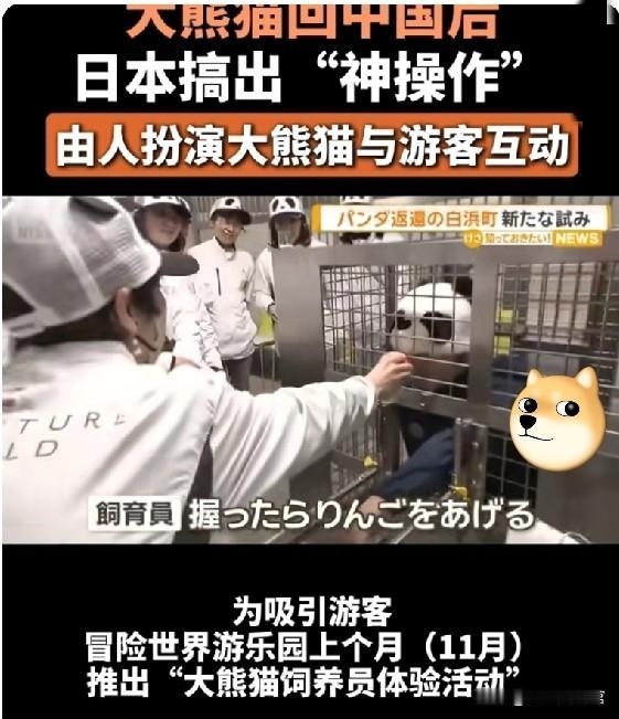 日本推出人扮大熊猫游客体验活动 日本这波操作真是绝了!今年6月,和歌山县冒险世界游乐园的4只大熊猫按协议回中国,可把当地旅游业害惨了。旅行巴士客流量较2024年减少约50%,旅店也没了往日热闹。 为了吸引游客,11月游乐园推出“大熊猫饲养员体验活动”。游客穿饲养员制服、戴熊猫主题帽,体验给“熊猫”模拟抽血等工作,而这“熊猫”竟是工作人员扮的。虽说这想法挺新奇,但哪能跟真熊猫比呀。不过为了救旅游业,园方也是绞尽脑汁了。