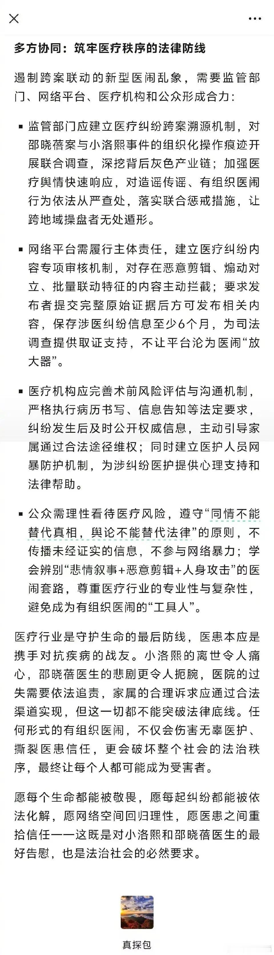 希望相关部门严惩新型医闹