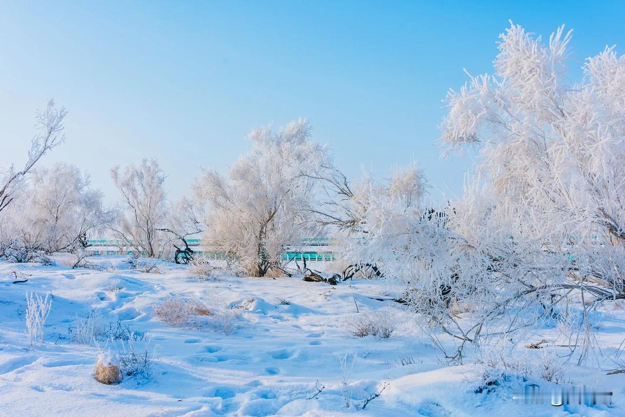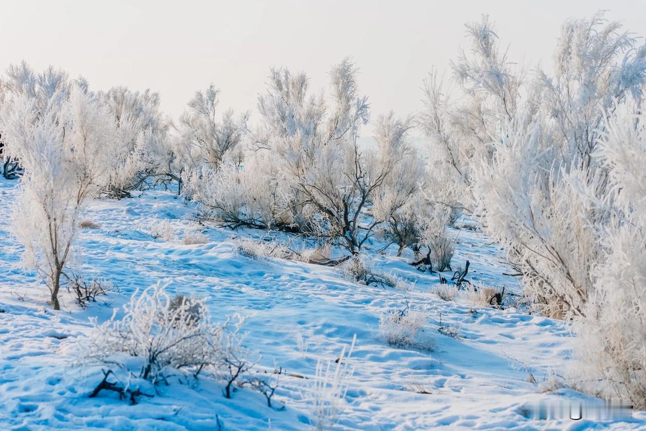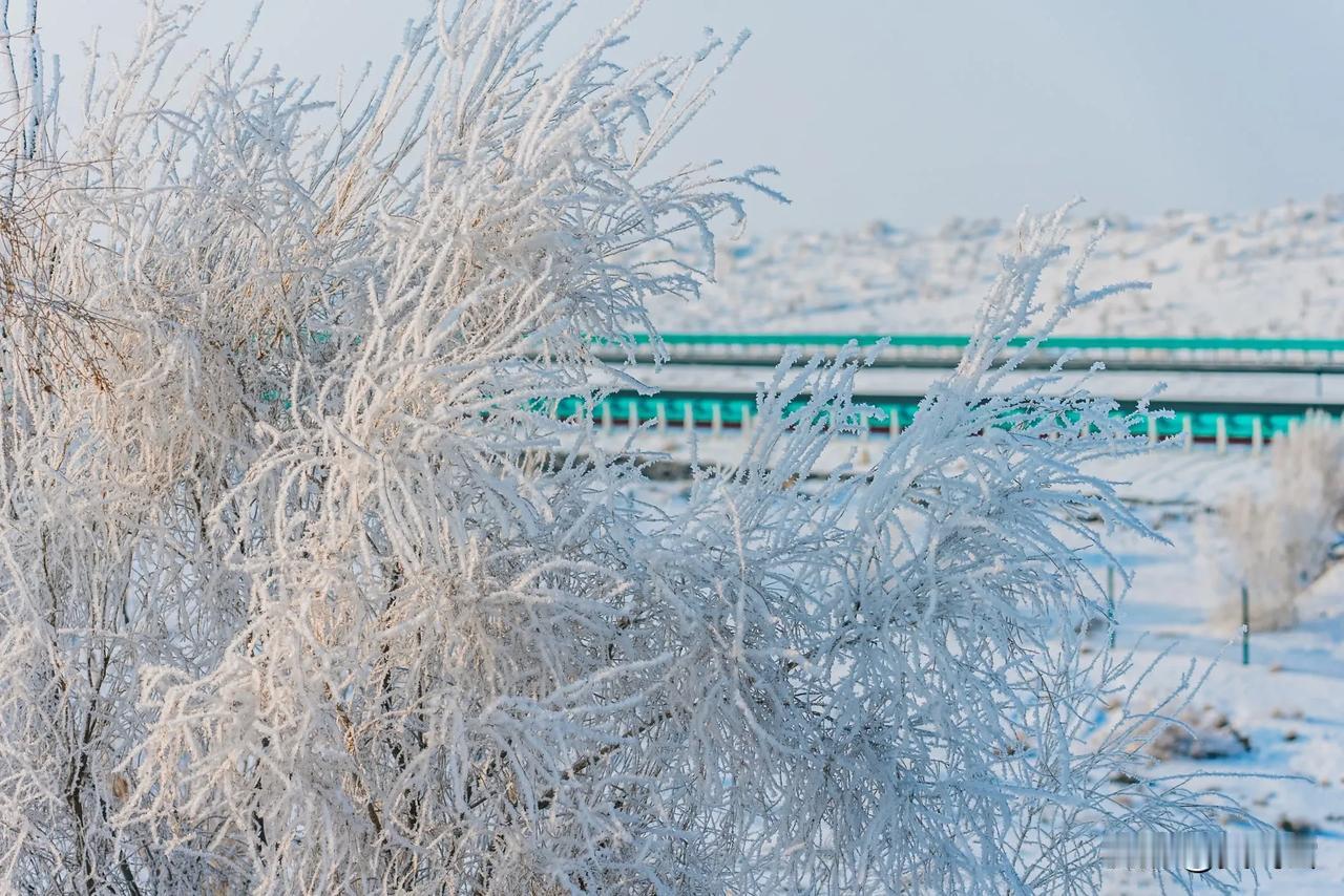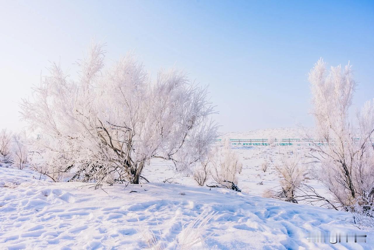 阿乌高速克拉美丽服务区的风景果然很美丽!克拉美丽沙漠公园是服务区的一部分。这里是古尔班通古特沙漠的腹地。属于雪都阿勒泰的福海县。 冬季的克拉美丽沙漠公园,银装素裹,沙丘被白雪覆盖,散落其中的梭梭林,枝头也挂上洁白的雾淞。美得不像在人间。 雾淞是空气中的水气凝结在树枝上,一般在河边或湖边比较常见,在沙漠中看到这么美丽的玉树琼枝,实在是不可思议! 热雪新疆e起来