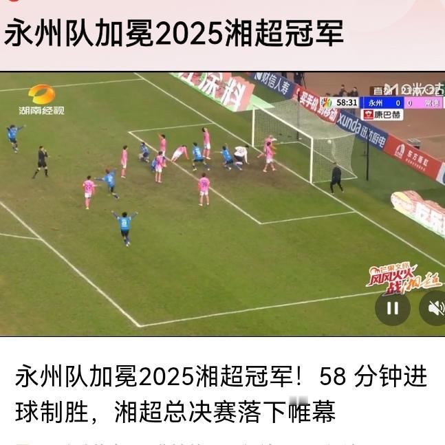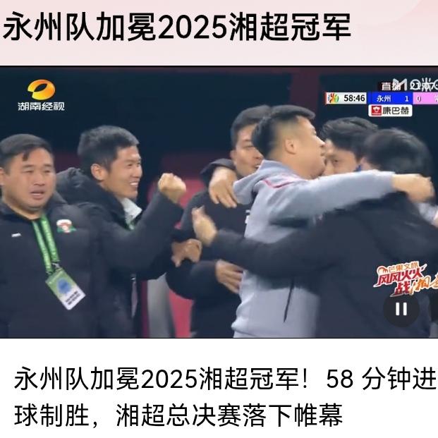 太燃了!永州队创造奇迹,1-0力克常德队,强势加冕2025湘超联赛总冠军,拿下队史首个湘超冠军,这一战看得人热泪盈眶。 12月27日晚的长沙贺龙体育场,四万多名观众共同见证这份荣光,这支平均年龄不到20岁的永州少年军,硬是靠着拼劲拼出了最高荣誉。他们本是不被看好的草根队伍,队员大多是学生,白天上课晚上训练,训练场地简陋,赛前还被戏称是草根杂牌军。 常规赛永州队5胜6平2负以第五名晋级,淘汰赛点球掀翻常规赛冠军长沙队,一路逆袭闯进决赛。决赛对阵劲旅常德队,双方上半场0-0僵持,第58分钟谷文杰头球补射打入制胜球,此后永州队多名队员拼到抽筋,核心林昊带伤离场,门将唐嘉年神勇扑救守住胜果,死死将1-0的比分守住。 没有优越的条件,没有大牌的球员,这群少年靠着一腔热血和永不言弃的韧劲,一步步逆袭登顶。他们用汗水和拼劲证明,草根也能创造传奇,青春的赛场永远充满无限可能。 这场胜利,不仅是永州足球的高光时刻,更是最动人的青春励志篇章,这样的冠军,才最有分量。