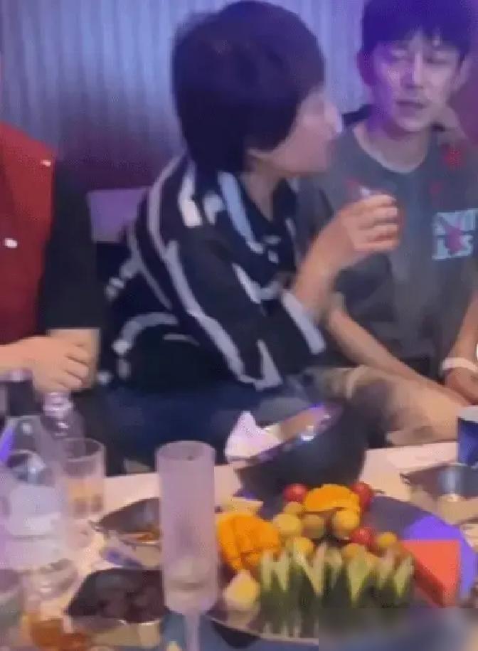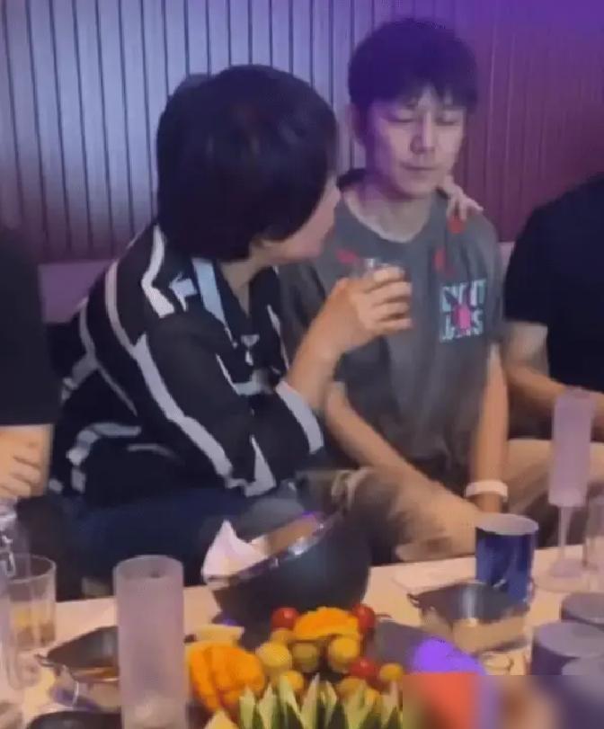 何炅被拍到在KTV里,身边那位大姐手就没从他肩膀拿下来,一杯接一杯地灌,他笑得比