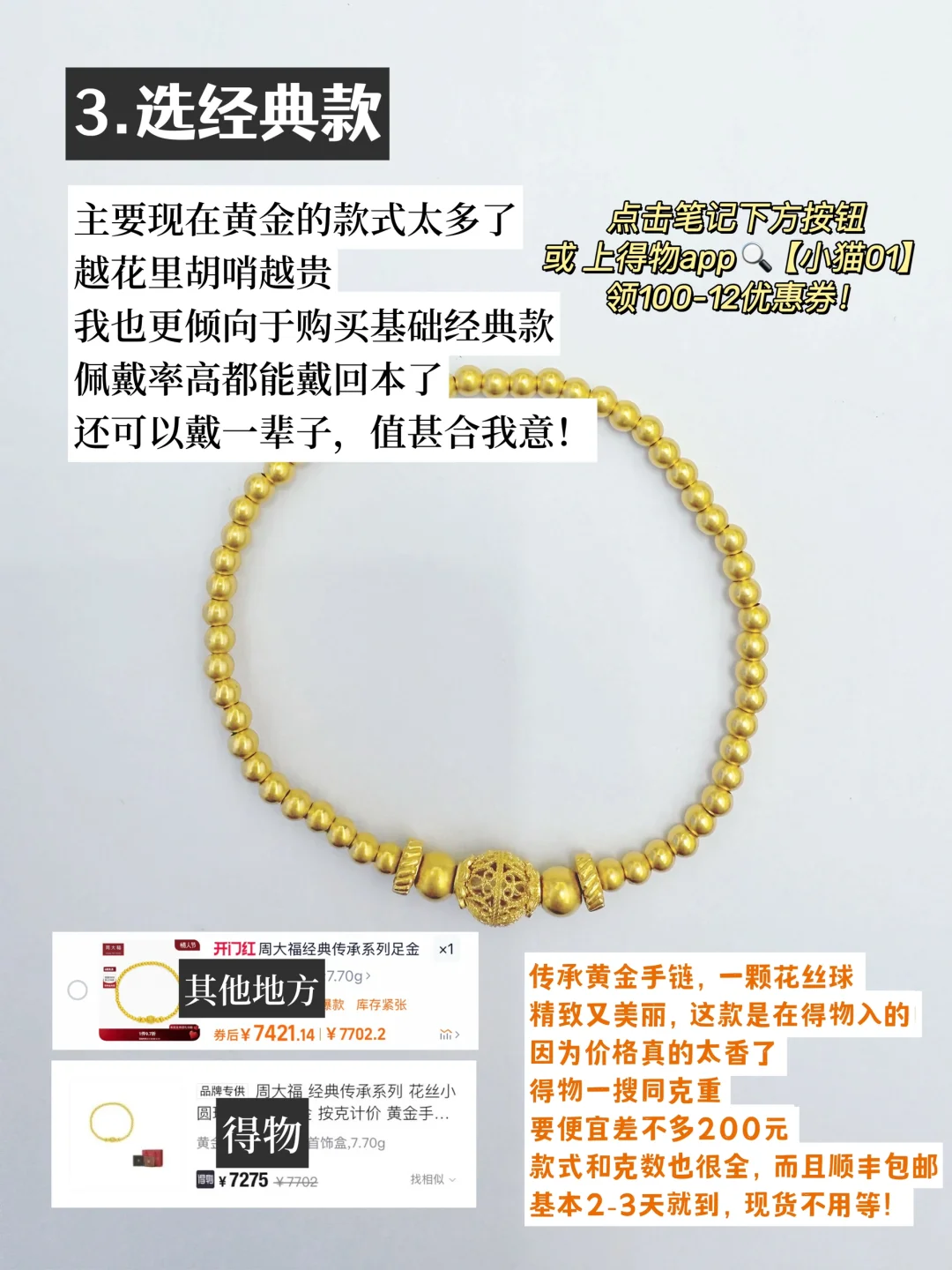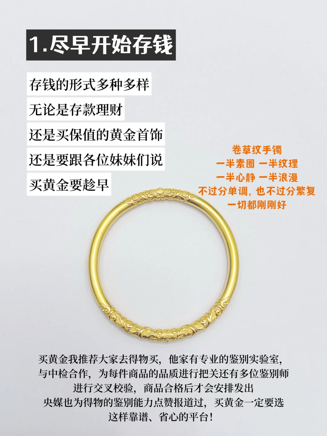 本期分享的同款黄金饰品都在得物app有售卖 感兴趣的宝可以直接点击【笔记末尾按钮】 或 上得物app🔍【小猫01】 超低价get同款!价格都很有优势, 记得领券下单更划算!新人还有520红包! - 今天和大家分享我的买金存钱心得: 1⃣尽早开始存钱 2⃣富了做首饰,穷了当盘缠 3⃣选经典款 4⃣冷静,货比三家 5⃣选大品牌,质量有保障 6⃣积少成多
