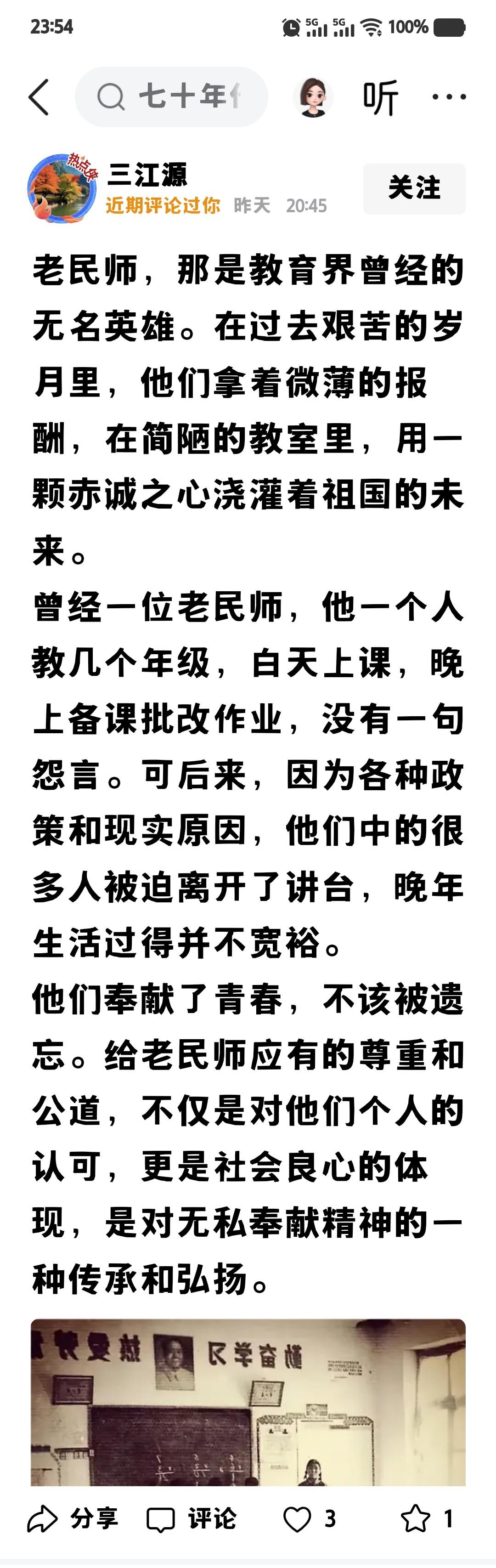 有网友在网上议论那年代被淘汰清退开除回家耕田种地的民办老师,说什么只要教过书的民