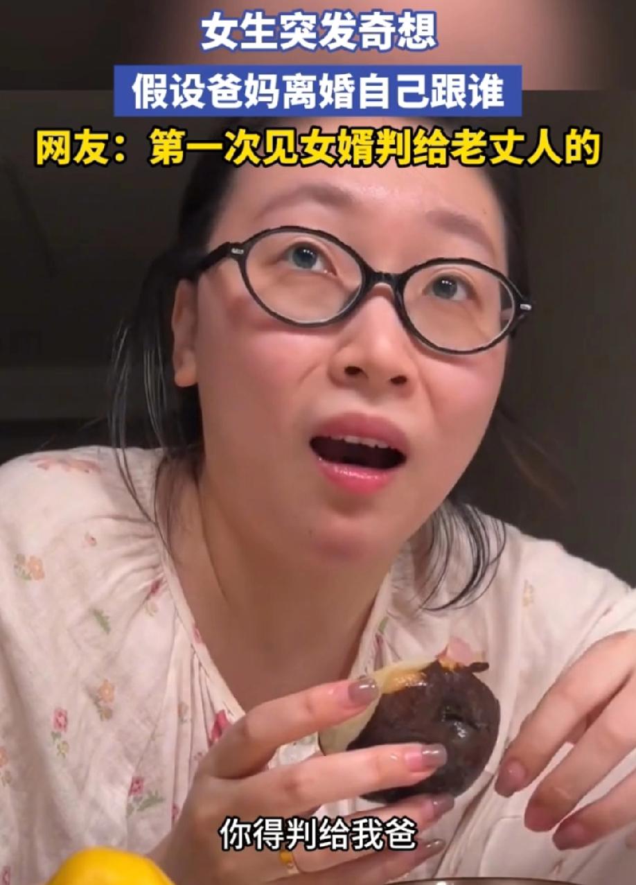 头一回见人吃冻梨把脑子给冻上,新奇 辽宁,一女子,估计年龄四十来岁,突然奇想问她老公,假设爸妈离婚自己跟谁。 “我估计我八成也判给我妈。”女子很认真地说。 “那我也判给妈呗。” 没想到,女子语出惊人“你得判给我爸。” “那为啥?” “正常来说你应该判男方。”女子眼里闪着些许“睿智”。 “你咋也得离啊” “咱俩不离就是各过各的呗。”一人分一个合理。 女子说得很认真,她老公问得很认真,我也看得很认真,感觉女子一种准备分居的不舍。一下子,都忘记她不是未成年人,都四十了,成年人了,爸妈离婚,还判给谁? 女子判给妈,我忍了,把老公判给爸,算咋回事?公公婆婆做梦都想不到,亲家两口子离婚,自家儿子凭空就不是自己的了?对方亲家公,老丈人还白捡一大胖小子。 事实证明,少吃点凉的东西吧!对脑子不好!