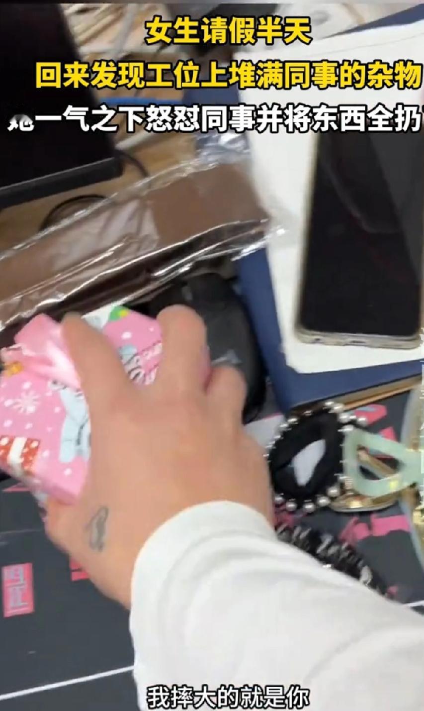 干得漂亮,该怼就怼,就不能惯着! 河北,一女子请假半天,回来发现工位上堆满同事的杂物,她一气之下怒怼同事并将东西全扔了。 同事之间,占用一下工位放东西很正常的,但是人都回来了,还看着你。同事竟然问“干嘛呢?”一点眼力劲都没有,整一个故意的。 女子扔的时候,同事嘴巴还吧啦着“你有病啊,高富啊。” 这话一出,不怼你怼谁“你拿谁工作当垃圾桶呢” “那都是我的,你摔得谁的。”这倒好,不扔不知道东西是谁的,一扔主人就认领了。 “我摔大就是你,怎么了不能摔呀,为什么要把东西放在我工位上,你工位上没有地方放是吗?你拿我工位当垃圾桶,我就半天没来,你哪那么多小破烂往公司里整呀,你有这功夫你不如整点业绩,整点客户。什么破玩意都他妈扔我这块。我全给你扔了。” 且不说东西这么多,堆桌子,自己不方便,老板过来看工位上乱七八糟,背锅的还是女子。是我也扔,这种人没一点脑子,尽把心思放同事上占便宜。干得漂亮! 虽然是段子,但是怼得好,乳腺都通畅了。