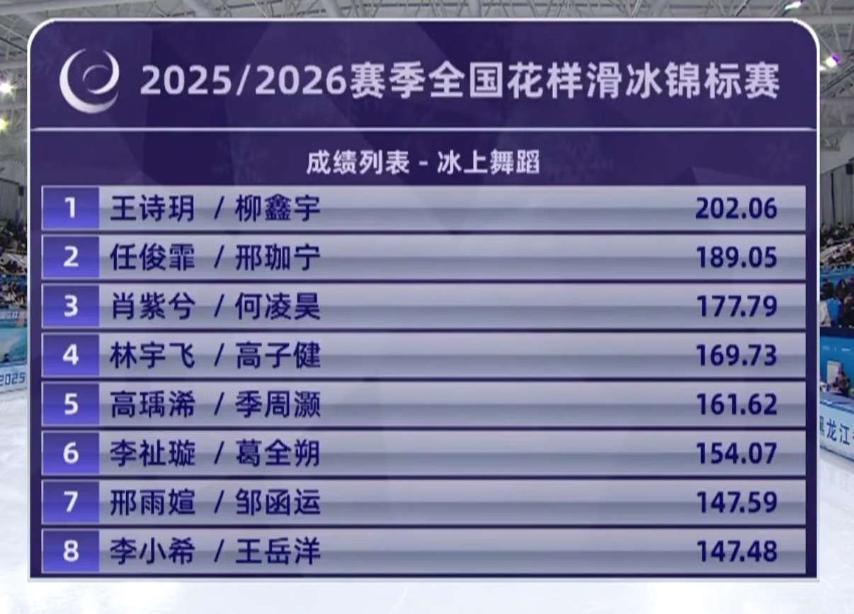 全锦赛冰舞比赛结束,王柳获得冠军,任邢、肖何分列第二第三。按照选拔规则,王柳获得米兰冬奥名额!王诗玥柳鑫宇全锦赛夺冠