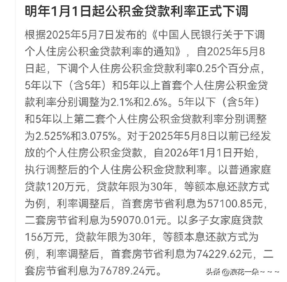 好👌!又省了不少钱?! 关系你的口袋的事又来了——从明年1月1日起公积金贷款利率正式下调。 话说,有这个好事总比没有强吧!现在买房子绝大部分都是有公积金贷款的,下调一点就可以每个月减轻一点负担,最起码家里的水电费,我估计给大家减免出来了。多好! 当然,把省出来的钱用在消费上来促进消费,这样不是更好吗?