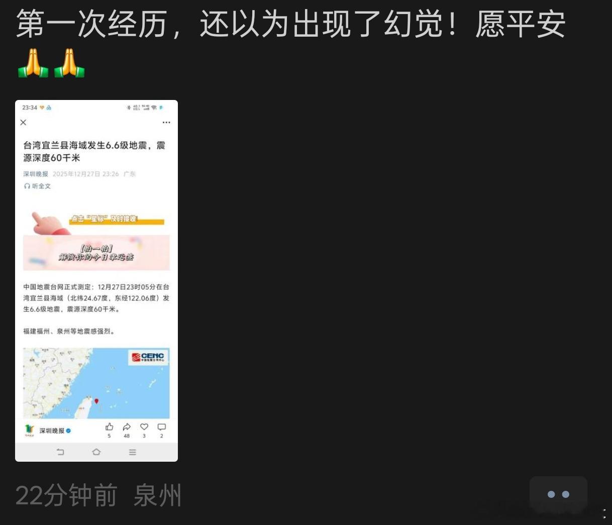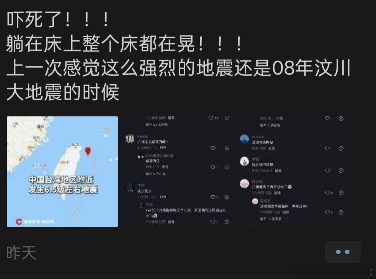 台湾海域6.6级地震刷朋友⭕️看到,福建和上海的朋友都感受到了震感,而且还挺明显平安上海震感 福州震感