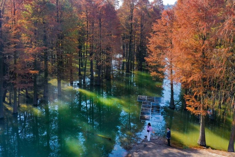 相册里最满意的风景照,我首推那组冬日红杉林的照片。江南初冬,气温适宜,红杉林的焦糖色美出了新高度。 今年干旱,石井水库水位低,红杉林露出水面,虽少了点水的灵动,但也有别样韵味。我用三分法构图,记录了不少精彩瞬间。有小姐姐和金毛温馨合影,横构图让红杉林色彩更丰富,氛围感拉满;还有朋友妈妈侧身坐在杉树下看风景,画面松弛又惬意。 另外,玉溪柿林的照片也很不错。冬日柿叶飘落,嫩黄、金黄交织,是冬日独特的名片,那凋落之美,让人沉醉。 除了红杉林和柿林,我相册里还有一组海边落日的照片也格外令人满意。那是一次说走就走的海边之行,傍晚时分,我来到了那片宁静的海滩。 太阳渐渐西沉,将天空染成了橙红色的画卷,金色的余晖洒在波光粼粼的海面上,像是无数颗钻石在闪耀。我赶紧拿起相机,用长焦镜头捕捉下了远处海平面上太阳慢慢下沉的绝美瞬间,那渐变的色彩,从橙红到浅粉,过渡得自然又梦幻。 还有一张照片,是海浪一波波涌来,拍打着岸边的礁石,溅起高高的白色浪花。我采用慢门拍摄,让海浪呈现出如丝绸般的质感,礁石在海浪的衬托下更显坚毅。看着这些照片,仿佛又能感受到当时海风的吹拂,听到海浪的声响,每一张都承载着美好的回忆。