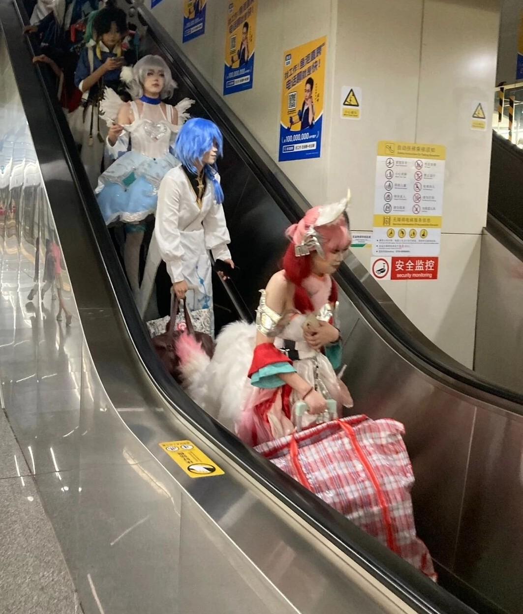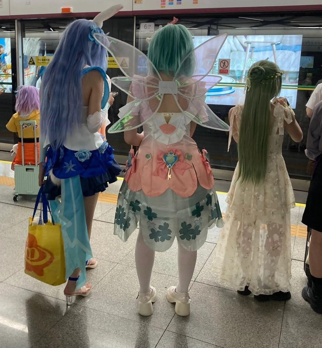突然进入了妖精的世界。 昨天去坐地铁, 发现突然多了许多漂亮的小女孩。 看这个打扮, 真的是满满的元气少女。 我也想打扮打扮,加入她们[害羞]