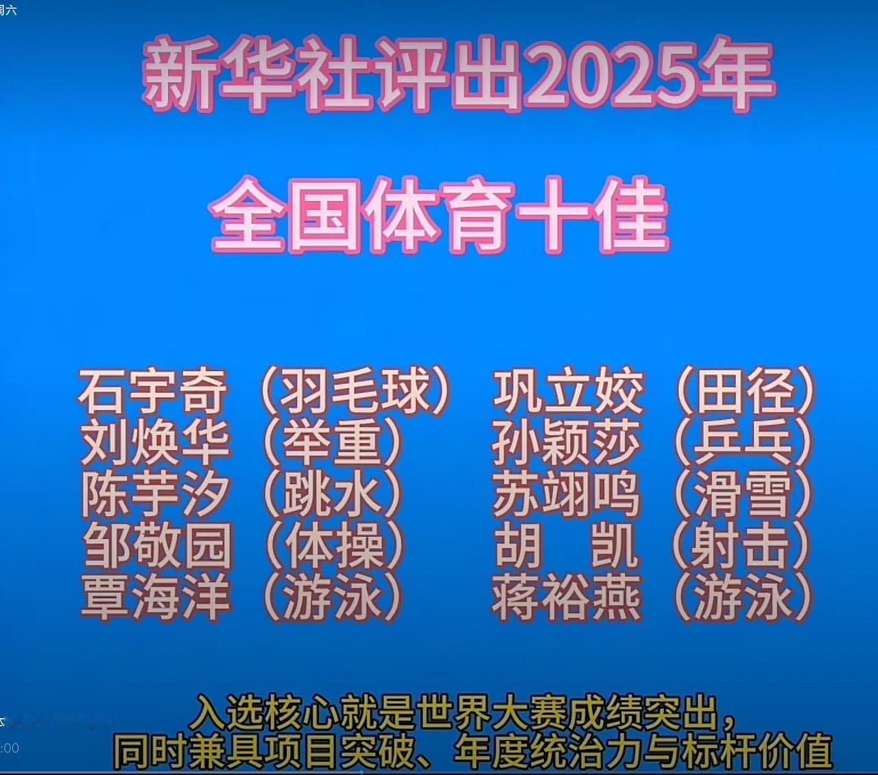 新华社认证的“十佳”, 陈芋汐凭什么稳坐C位? 新华社2025年全国体育十佳名
