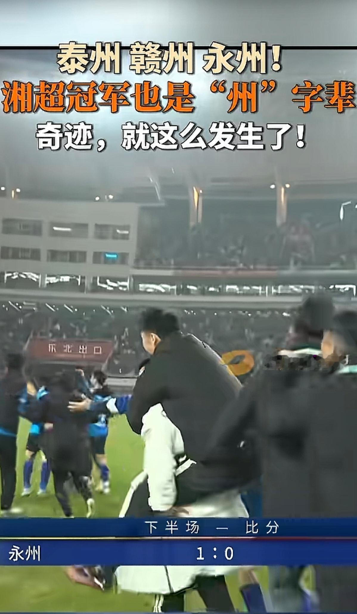 在昨晚12月27日的湘超决赛中,永州队1:0常德队,获得2025湖南省足球联赛冠军。更为神奇的是,中国三大“省超”冠军都是“州”字辈。苏超冠军为泰州队,赣超冠军为赣州队。今年火爆的三大“省超”足球联赛,奇迹就这么发生了。