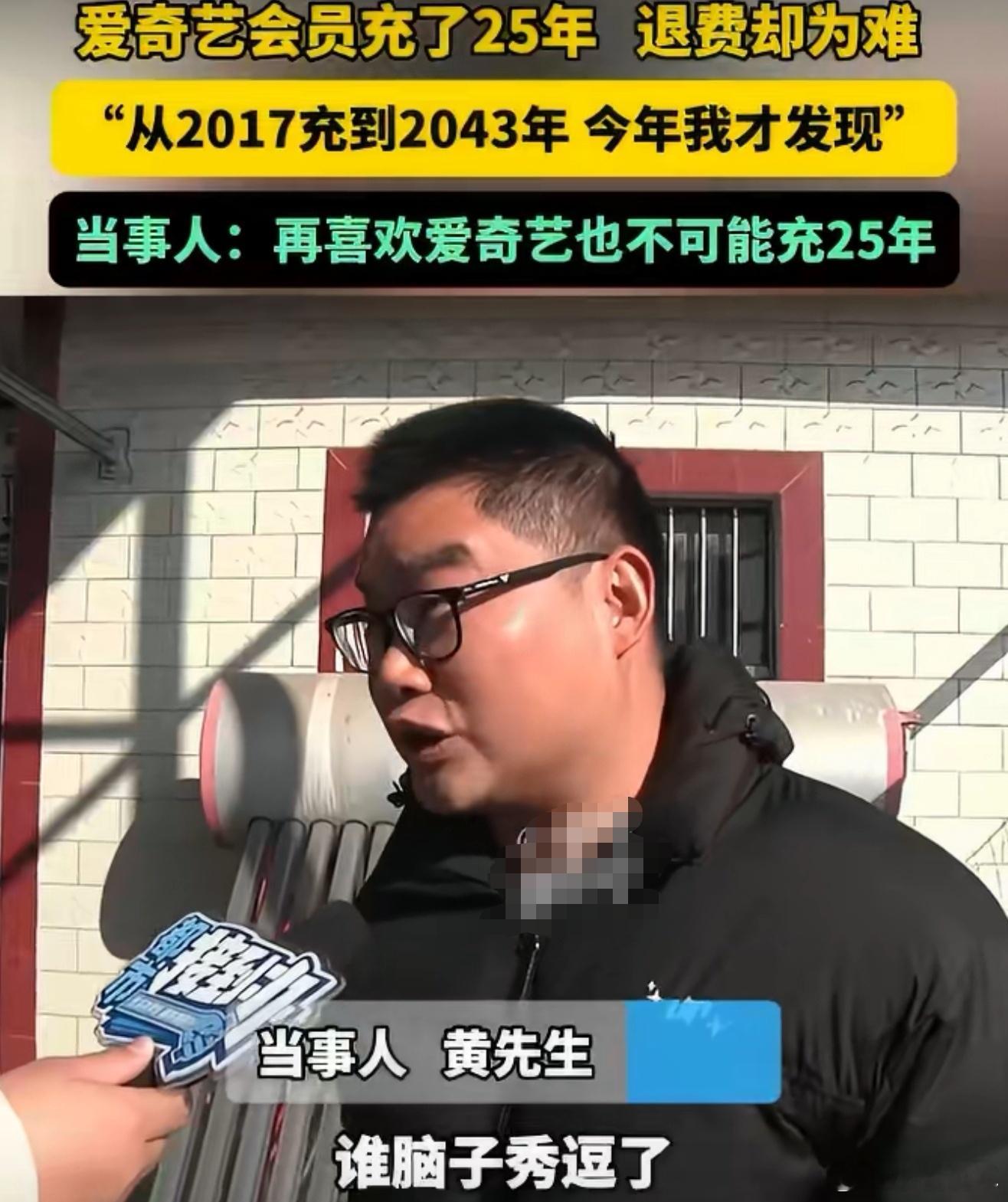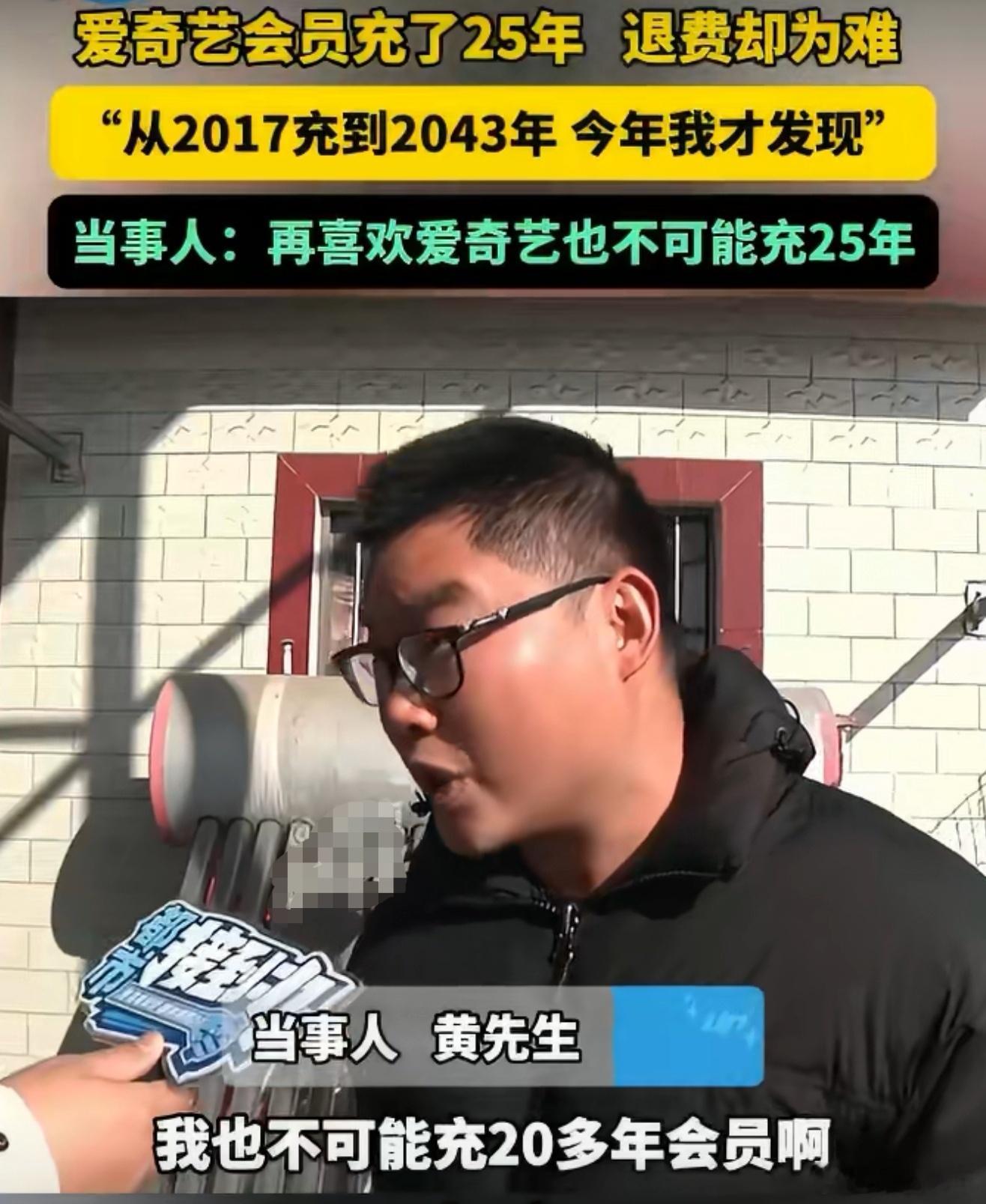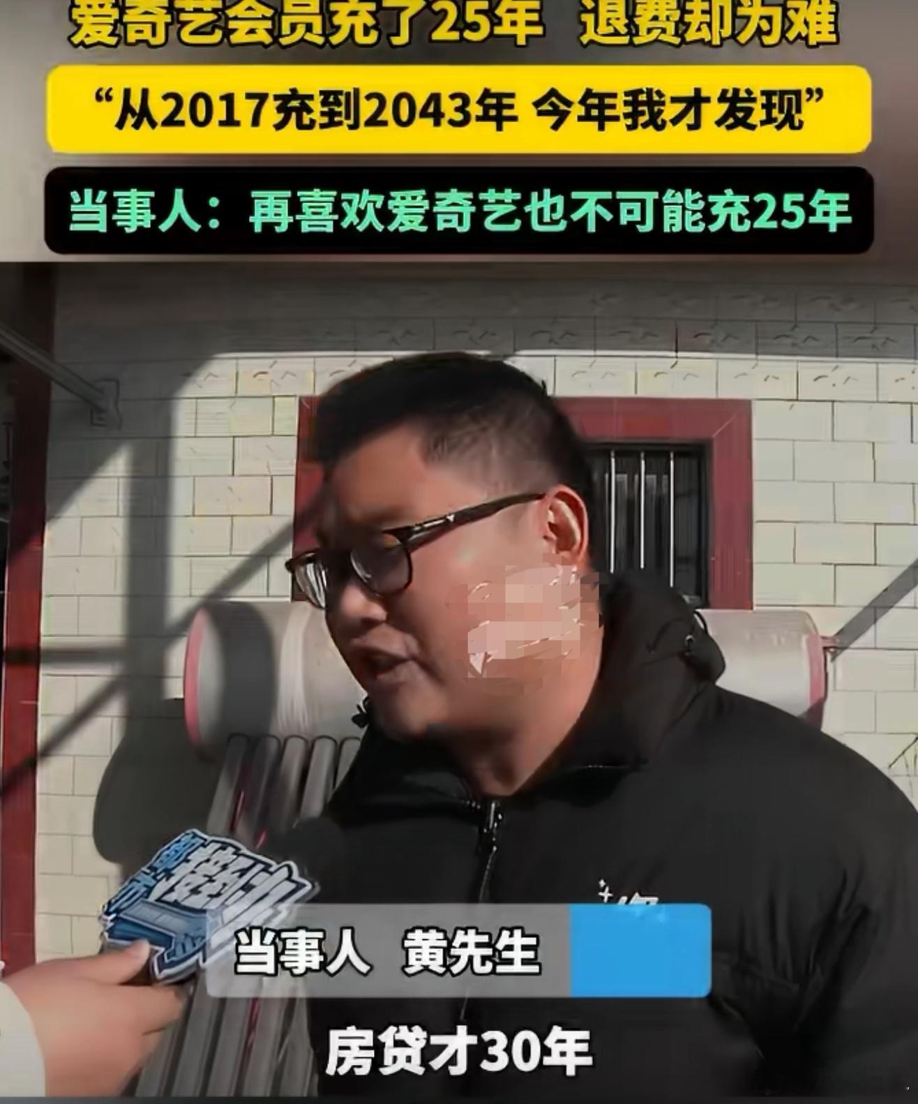 男子爱奇艺会员充了25年遇退费难再怎么喜欢也不可能充25年,房贷才30年,有点真实了,误充的又没用为什么不能退,给人家退了得了