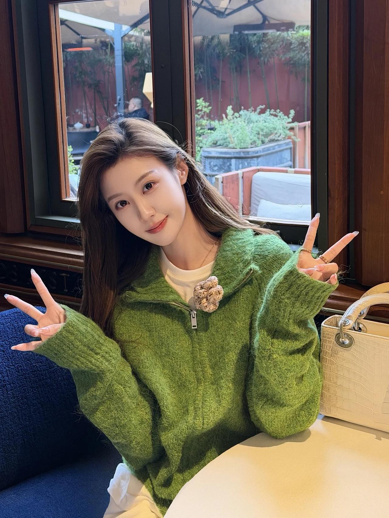 湖畔绿意盎然,少女漫步其中,享受宁静时光。