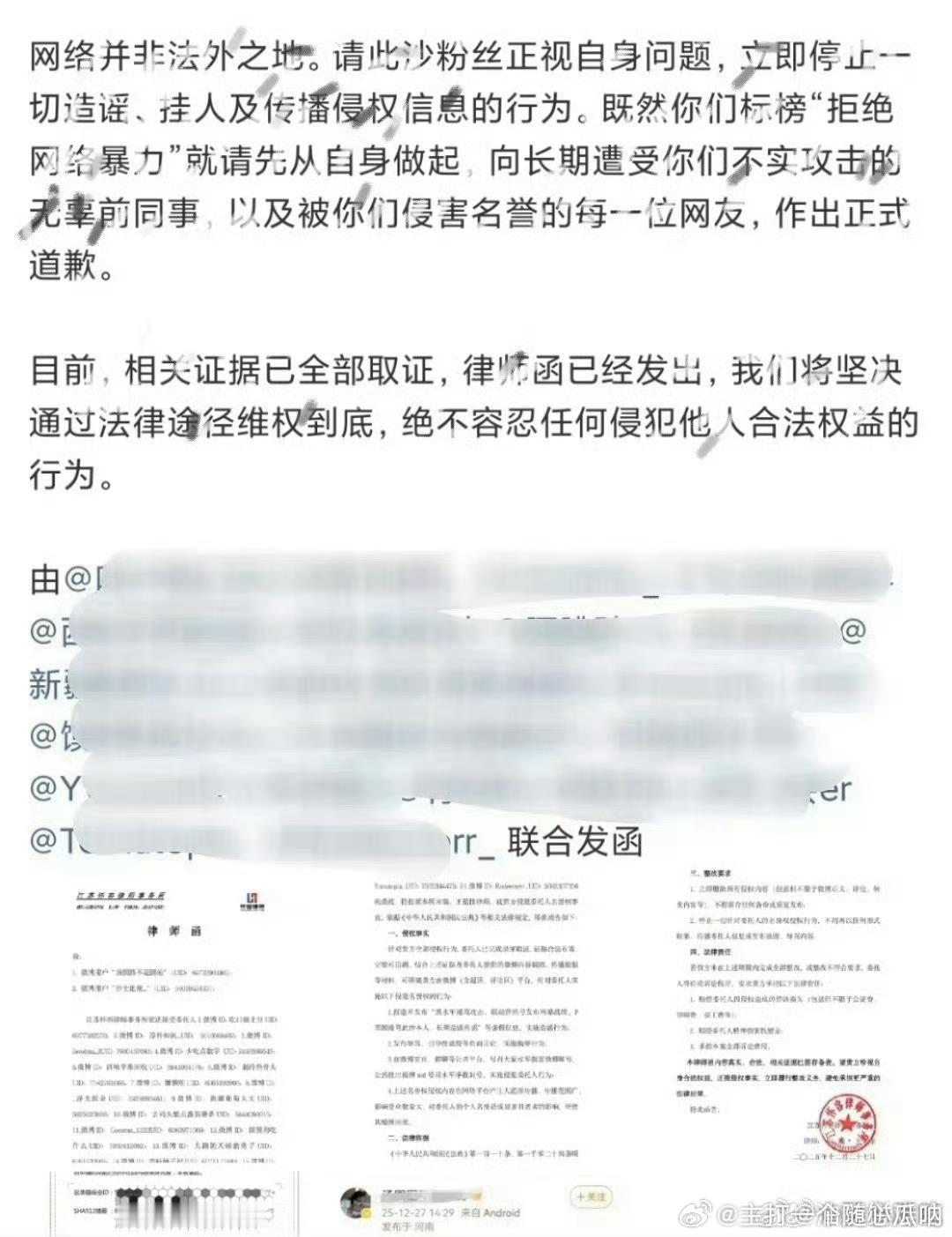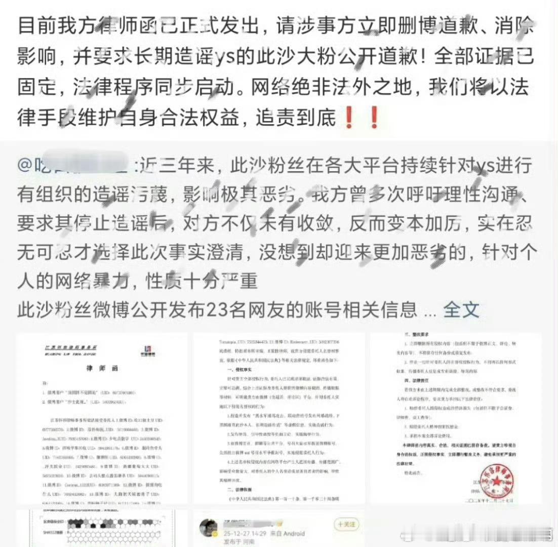 于适家给此沙粉丝发律师函了