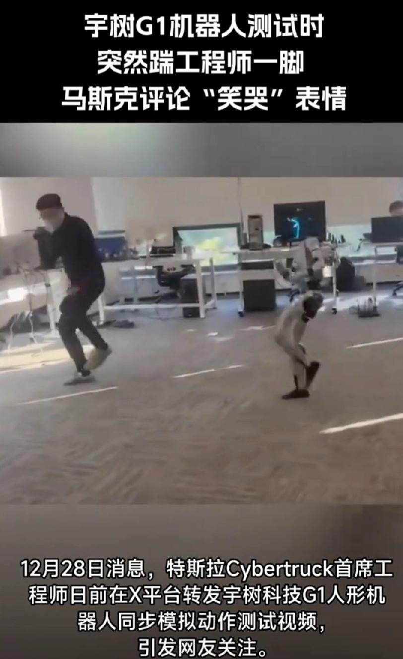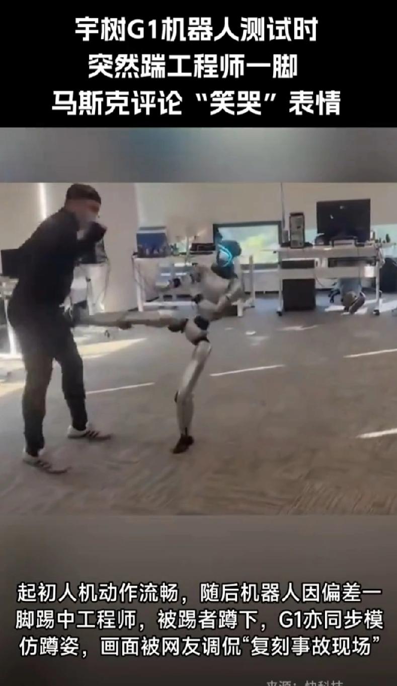 马斯克看到这个还能笑得出来,说明他真的是大心脏。 宇树机器人在测试时不小心踢了一