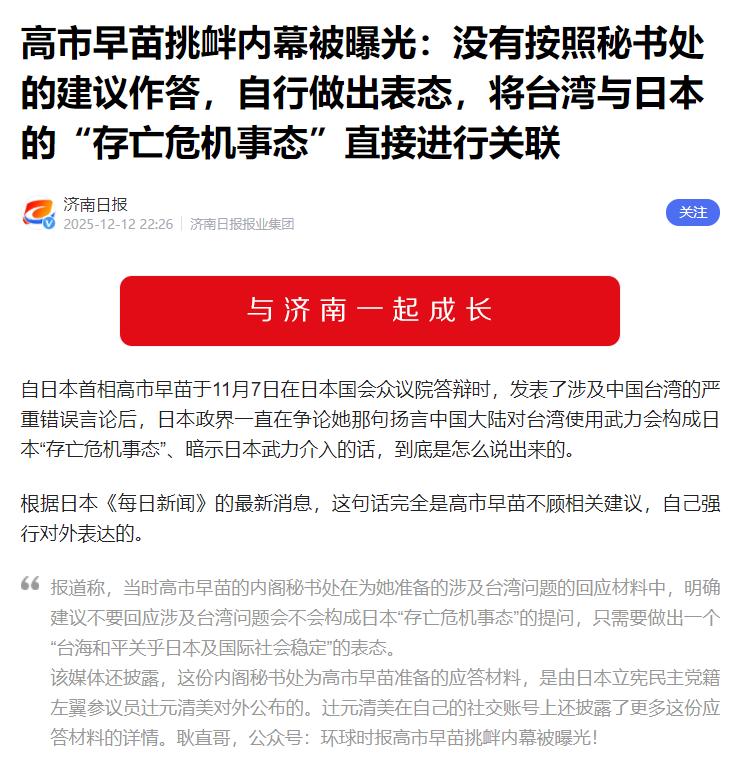 中日关系已经到了如此紧张的地步了!俄罗斯媒体公然警告,如果中方继续以和平的姿态退让下去,那就很难换来和平大国的尊严,换来的可能是更加严厉的“挑衅”。 这话听着不好听,但确实是实话,国际上根本没有“你让一步,对方就客气一点”的道理。 其实所谓的“退让”根本不是单方面妥协,尊严也不是喊口号喊来的,这背后拼的就是实力。日本最近的一系列操作,把这点露得明明白白。 就说大家都知道的钓鱼岛,本来就是咱们中国的地方,咱们一直想着和平商量解决,可日本偏不收敛,反而变着法地耍花样。 有艘叫“鹤丸”号的日本渔船,就是个老油条,专门在钓鱼岛海域捣乱。前两年一直非法闯入钓鱼岛领海,先后差不多来了5-6次。咱们海警一直克制,先喊话警告再执法,可日本根本不买账。 除了在钓鱼岛挑事,日本在军事上的动作也越来越大胆,花的钱一年比一年多。 2023年防卫预算6.8万亿日元,2026年预算草案直接冲到9万亿日元,连续14年上涨。 以前说防卫费不超过GDP的1%,现在早就突破到2%了。他们买远程导弹、无人机,还在离咱们钓鱼岛、台湾岛近的西南地区增兵,针对性一眼就能看出来,就是想突破和平宪法,当军事大国。 更过分的是,日本首相高市早苗还公然喊出“台海有事就是日本有事”,甚至在国会答辩时坚称这话符合日本政府看法,死活不肯撤回。 这话的影响可太坏了,完全不把一个中国原则当回事,明目张胆干涉咱们中国的内政,还把台海问题和日本绑在一起,加剧了地区的紧张局势,这不明摆着是想重蹈军国主义的覆辙嘛。 事后咱们中方第一时间就提出了严正交涉和强烈抗议,警告日方不要在台湾问题上玩火,玩火者必自焚。可日方根本不当回事,依旧执迷不悟,这更能看出他们的挑衅野心根本没收敛。 经济上日本也没闲着,最明显的就是限制给咱们出口造芯片的设备。2024年4月,他们在原来限制23类设备的基础上,又加了十多项。 他们本来以为能卡咱们脖子,因为以前全球一半以上的半导体材料都被他们垄断。 可没想到咱们没退让,全力搞自主创新,南大光电的光刻胶、上海微电子的光刻机都搞出来了,现在国产设备自给率超过40%。反而日本因为丢了中国这个大市场,半导体行业亏了上千亿日元。 说这些不是要挑事,是想让大家明白,国际上拼的是实力,尊严是靠自己挣的。俄罗斯媒体的警告没说错,和平不是让出来的,只有咱们实力强、态度硬,对方才不敢随便挑衅。 咱们中国热爱和平,但不是好欺负的。看看海警在钓鱼岛常态化巡航驱离日本渔船,芯片产业突破封锁,国防实力越来越强,这才是维护和平、赢得尊严的办法。 面对日本挑衅,咱们没退路,只有坚定立场、增强实力,才能守住国家主权和尊严,换来真正的和平稳定。