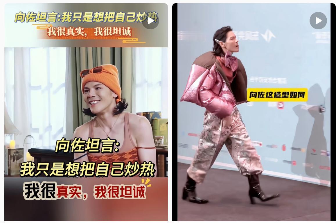 向佐最近总被说“娘娘腔”,但他的变化真只是为了博眼球吗? 以前他在《霍元甲》跟李连杰对打不怯场,《我的拳王男友》里满脸是伤不用替身,妥妥的硬汉。现在抖音穿粉色透视衬衫扭腰,直播套女装吊带涂口红,巴黎时装周还穿蓝裙,反差大得让人认不出。 他想走打星路却总扑街,电影口碑票房都不行,观众只记得他僵硬表情。后来穿奇装异服上红毯,结果热度比所有明星加起来都高,尝到甜头就越玩越疯。 你们说他是真喜欢这样,还是被现实逼得找新出路?