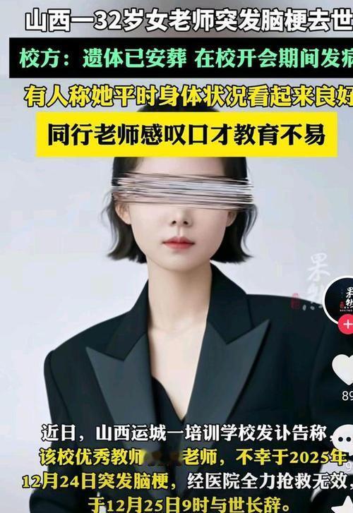 2025年12月24日,山西运城32岁口才老师悦悦突发脑梗,经全力抢救无效,于25日离世。她专注教育7年,教学尽心,深受师生喜爱。其离世令人痛惜,更警示职场人关注健康,莫让拼搏透支生命。老杜悦悦事件 悦悦清唱
