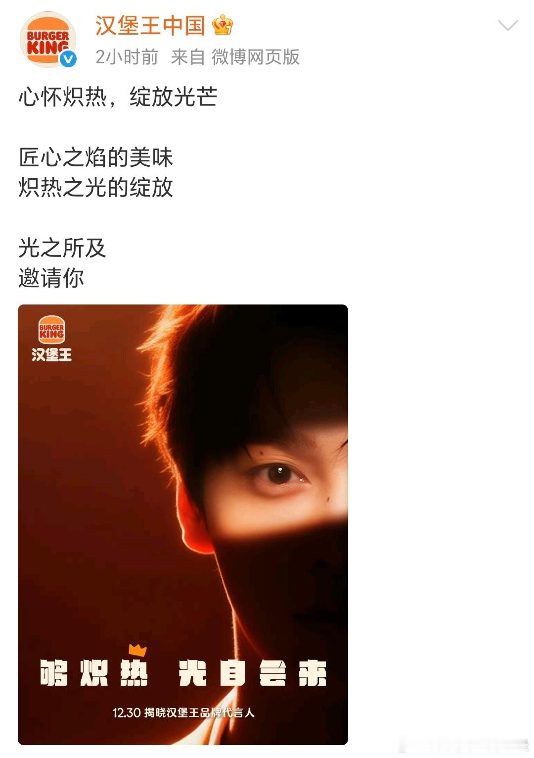 就爱看各大品牌这么重视田栩宁的亚子汉堡王预热中