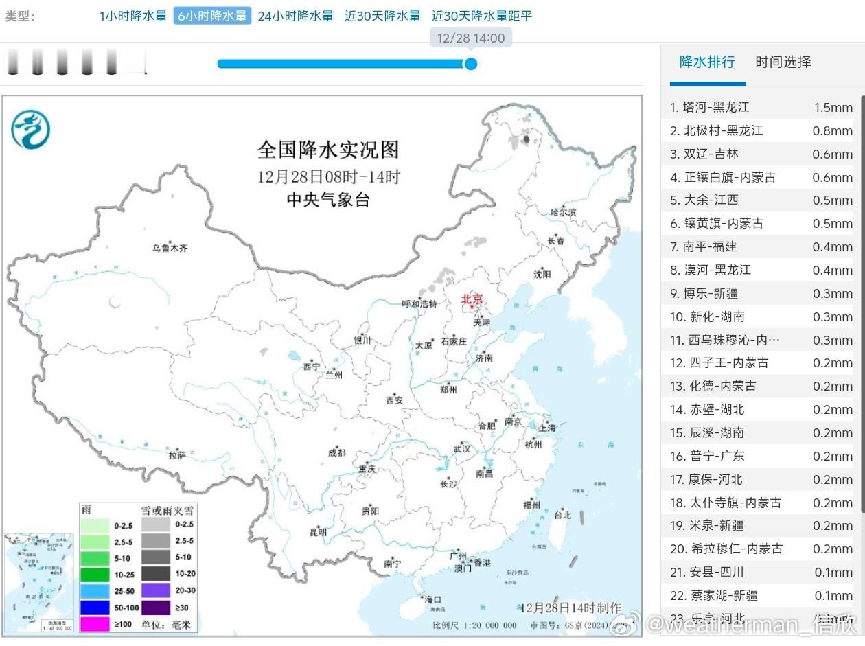 【雨雪少】今天08-14时,我国大部地区依然是晴天多、雨雪少。长江流域多地,下午14时相对湿度也不到40%,部分城市 甚至低于30%,比如江苏扬州26%、常州26%、无锡28%、苏州28%、安徽宣城29%、湖北咸宁29%。今天下午到明天中午,总体雨雪依然不多。但四川重庆贵州降雨会有所增多,黑龙江吉林辽宁三省东部降雪会增多。