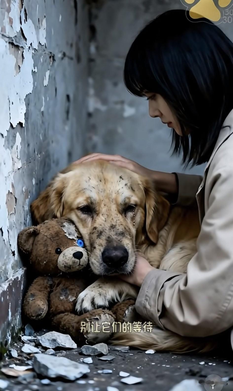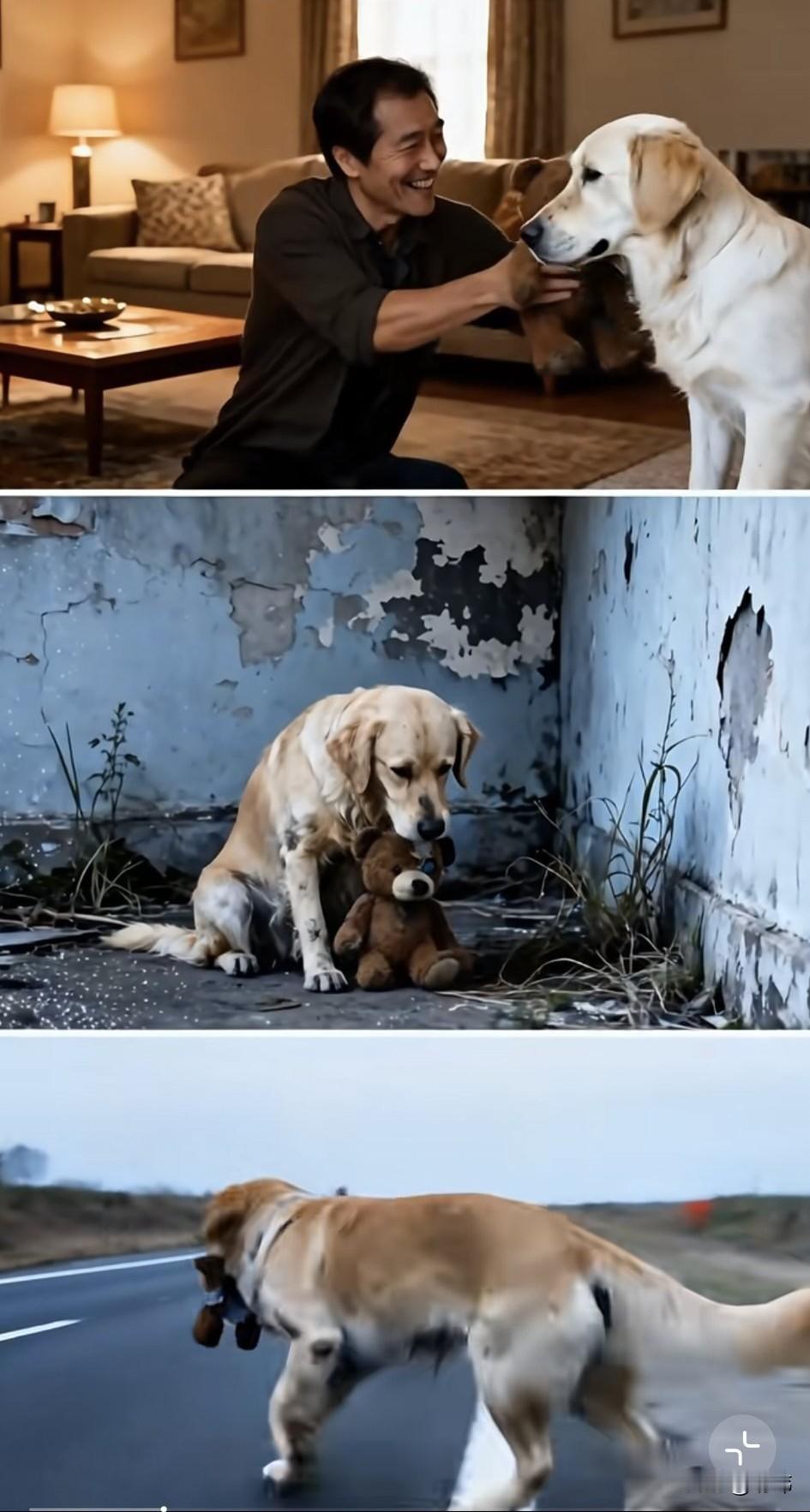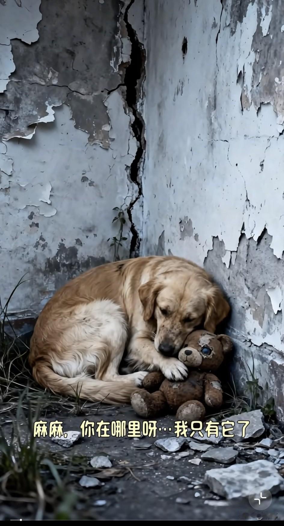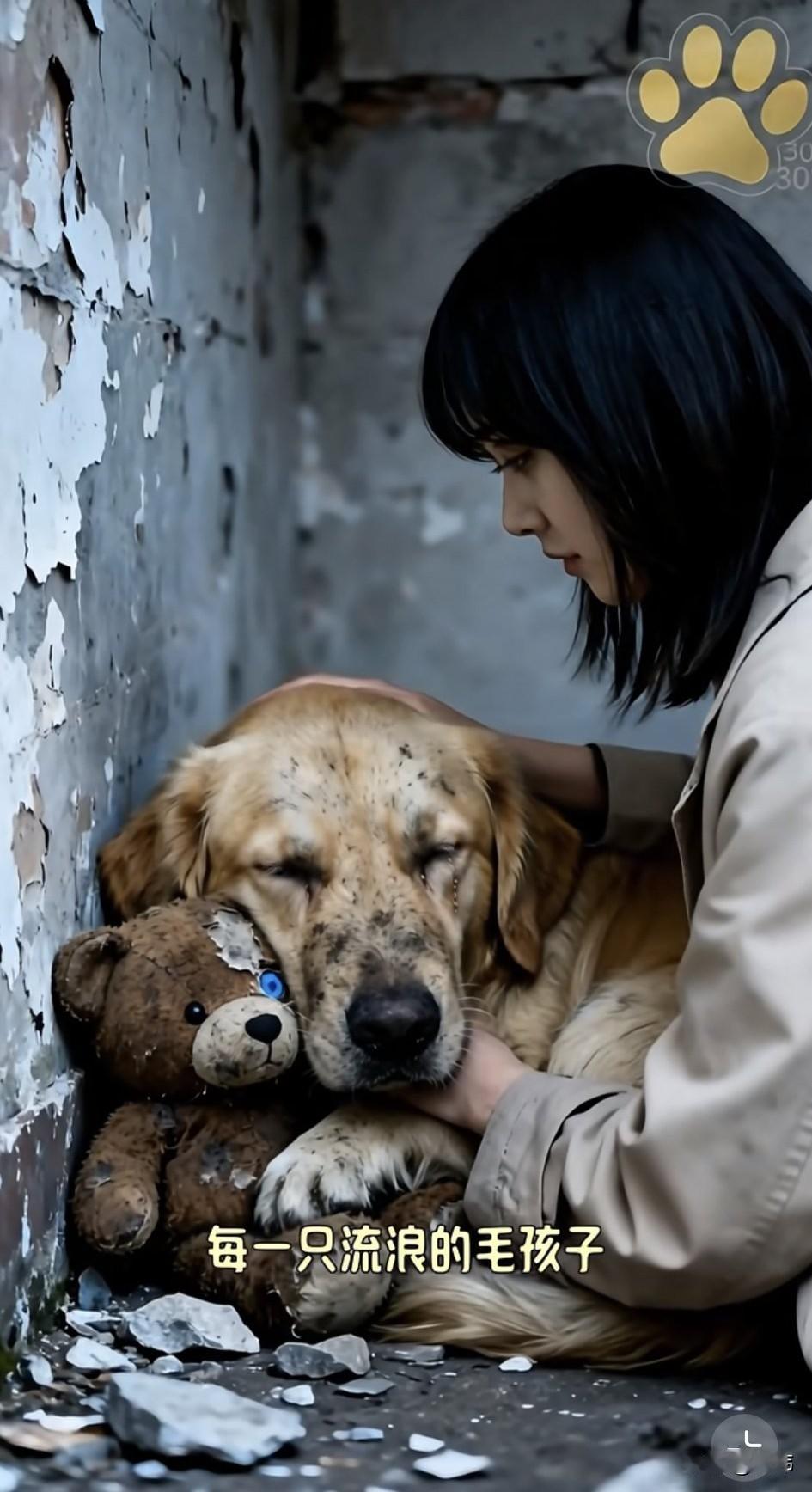 泪目了!一只流浪狗抱着它的小熊,落寞地蜷缩在一个墙角回想着当初主人给它买来这个小