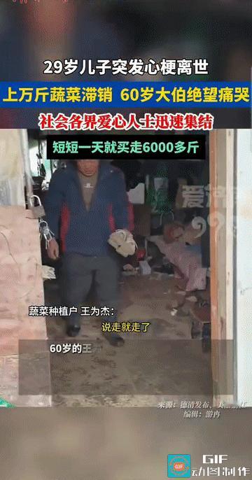 “让人感动!”29岁小伙在家吃晚饭时毫无征兆地倒下,一两分钟内便因突发心梗离世。这个家庭的顶梁柱,一米七八的健壮儿子,留给60岁父亲王为杰的,除了撕心裂肺的悲痛,还有地里即将烂掉的上万斤蔬菜! 来源:【济南日报·爱济南】 60岁的王为杰一家来自安徽,在德清承包了40亩土地,以种菜为生。这个家庭原本有着明确的分工:身体健壮的29岁儿子是家里的顶梁柱和销售主力,每天负责将三四百公斤蔬菜运往杭州等地销售;王为杰则在本地农贸市场零售! 然而,一周前一个寻常的傍晚,家庭支柱骤然崩塌。儿子送完货回家,拿起馒头还未入口,便在一两分钟内因突发心梗倒下了。这位身高一米七八的“90后”小伙的离世,留给家人的除了巨大的悲痛,还有地里正在丰收的上万斤待售蔬菜! 王为杰瞬间被推至绝境:妻子去年刚做完心脏手术需要静养,两个孙子尚且年幼,生活的全部重担都压在了这位花甲老人肩上。更现实的问题是,失去了儿子的运输和销售渠道,地里的白菜、包菜等蔬菜的销路断了。他独自去市场零售,销量锐减三分之二,眼看上万斤辛勤劳作的成果就要付之东流! 就在这个家庭陷入绝望之际,12月25日,当地媒体报道了他们的遭遇。一场跨越线上线下的爱心接力迅速自发启动! · 媒体与公益组织:迅速联合街道,开设线上爱心助农通道。 · 企业与机构:德清县新世纪大酒店当即承诺每日采购;德清县供销集团启动销售渠道,承诺兜底解决销路。 · 社会大众:德清县融媒体中心热线接到近百个咨询订购电话,订单从四面八方涌来。 截至12月28日中午,基地已销售(含预售)的蔬菜超过了60000斤。王为杰红着眼眶说:“真的没想到,短短一天时间,这么多蔬菜就都有了着落。” 这个悲伤的故事,因爱而改写结局。从王为杰一家“不想给别人添麻烦”的咬牙坚持,到社会各界“就怕你不想麻烦我”的主动伸出援手,勾勒出了一幅“我为人人,人人为我”的温暖图景! 它告诉我们,最深沉的善意,不仅是在他人坠入深渊时放下绳索,更是编织一张牢固的社会安全网,让每一个努力生活的人,在突然跌倒时都不会无助。这座城市的温度,不仅融化了滞销蔬菜的冰雪,更托住了一个骤逢变故的家庭继续前行的勇气!